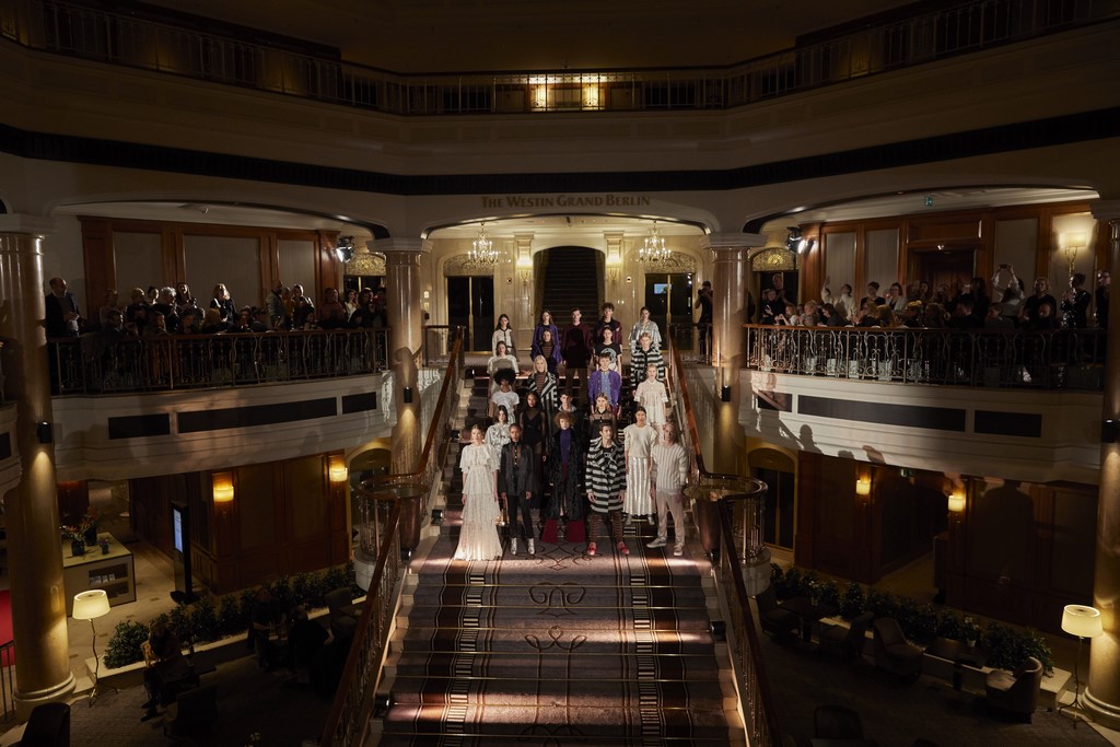 Designer Marcel Ostertag präsentierte seine AW 2019 Kollektion in den eleganten Räumlichkeiten des Grand Westin Hotels in Berlin (Foto Getty Images)
