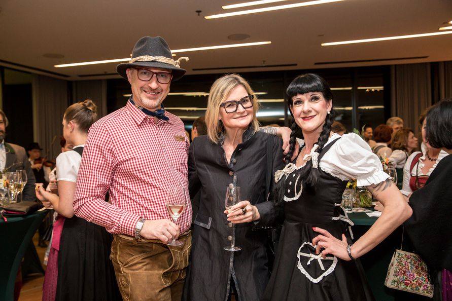 70. Steirischer Bauernbundball – Empfang im Styria Media Center – Thomas Huemer, Hedi Grager und Romana Möstl (Foto Tamara Mednitzer/Ballguide)