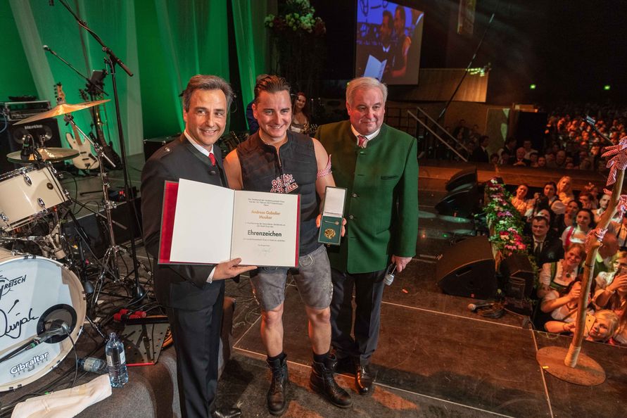 Bauernbund-Direktor Franz Tonner freute sich: „Das ist für uns ein Wahnsinn. 70 Jahre Bauernbundball, 70 Jahre Landjugend, 10 Jahre Andreas Gabalier. Und dass ihm dieses Ehrenzeichen hier am Ball verliehen worden ist, wo für Andreas alles begann, ehrt uns als Bauernbund sehr.“
