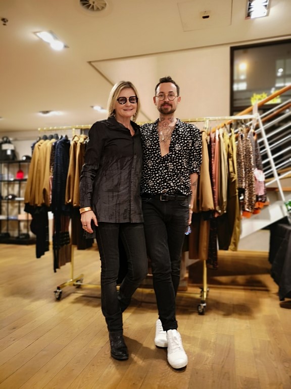 Ich spreche ihn auf seinen Herzenswunsch, eine Modelinie für Männer, an. „Die kommt sehr gut an und wir haben sie in den ersten beiden Saisonen so richtig outgoing gestaltet. Die nächste Kollektion wird ein bisschen tragbarer für die Männer werden. Wie du siehst, bin ich selbst ja immer in schwarz/grau gekleidet. Das bin halt ich. Und deshalb wird es in der nächsten Kollektion mehr schwarz geben – weil ich sie selber anziehen möchte“, schmunzelt er.