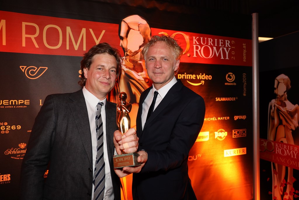Goldregen auch für „Der Pass“ von Sky: die Serie erhielt die Akademie ROMY® für „Beste TV-Serie“, Dieter sowie Jakob Pochlatko und Quirin Berg erhielten den Preis als „Beste Produzenten TV-Fiction“. „Die Arbeit im Team war ein Vergnügen“ betont Hauptdarsteller Nicholas Ofcarek in seiner Laudatio.