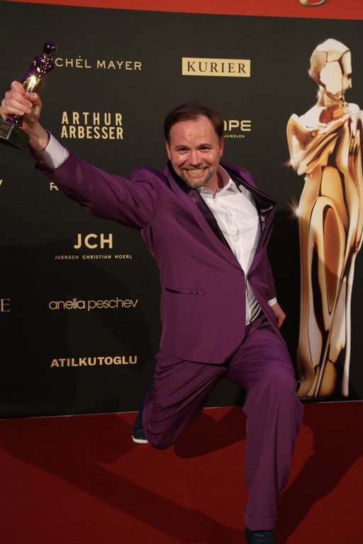 Thomas Stipsits wurde für „Love-Machine“ & „Geschenkt“ als Beliebtester Schauspieler Kino/TV-Film geehrt. Charmant meinte er: „Ich darf heute mit zwei Frauen heimgehen. Beide fast gleich alt und wunderschön“.