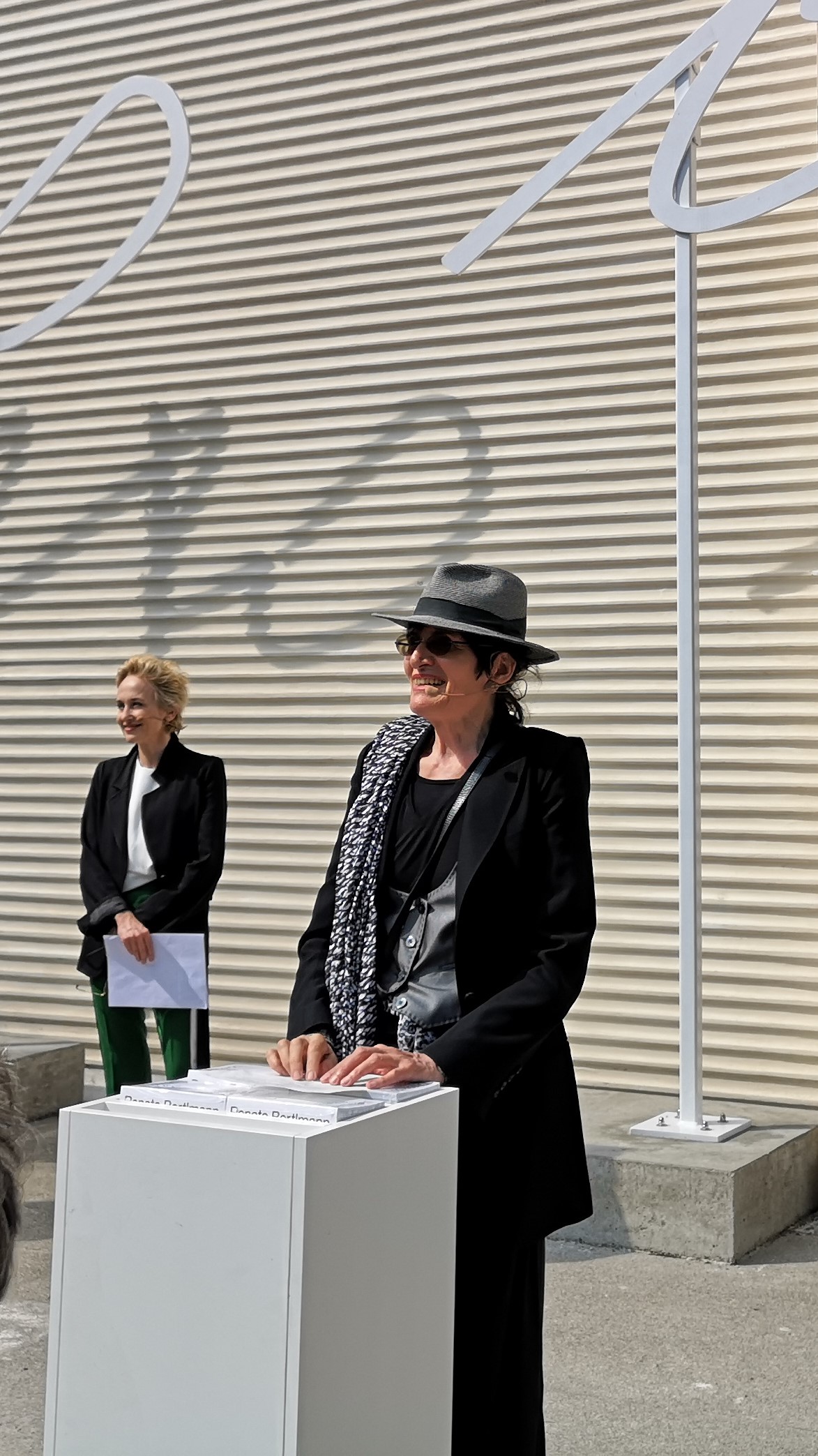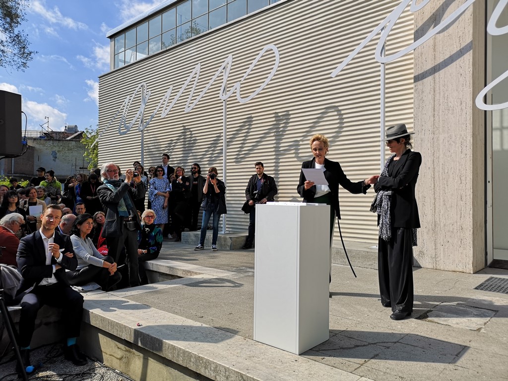 Im Jahr 1980 wurde der Pavillon zwar bereits von Frauen bespielt, allerdings mussten sich damals Maria Lassnig und Valie Export den Auftritt teilen. Renate Bertlmann ist die erste Frau mit einer Solo-Ausstellung im Österreich Pavillon. Kuratorin Felicitas Thun-Hohenstein bedankte sich dafür beim ehemaligen Minister Thomas Drozda, der dies ermöglicht hatte und auch Minister Blümel tat dies bei seiner Rede.