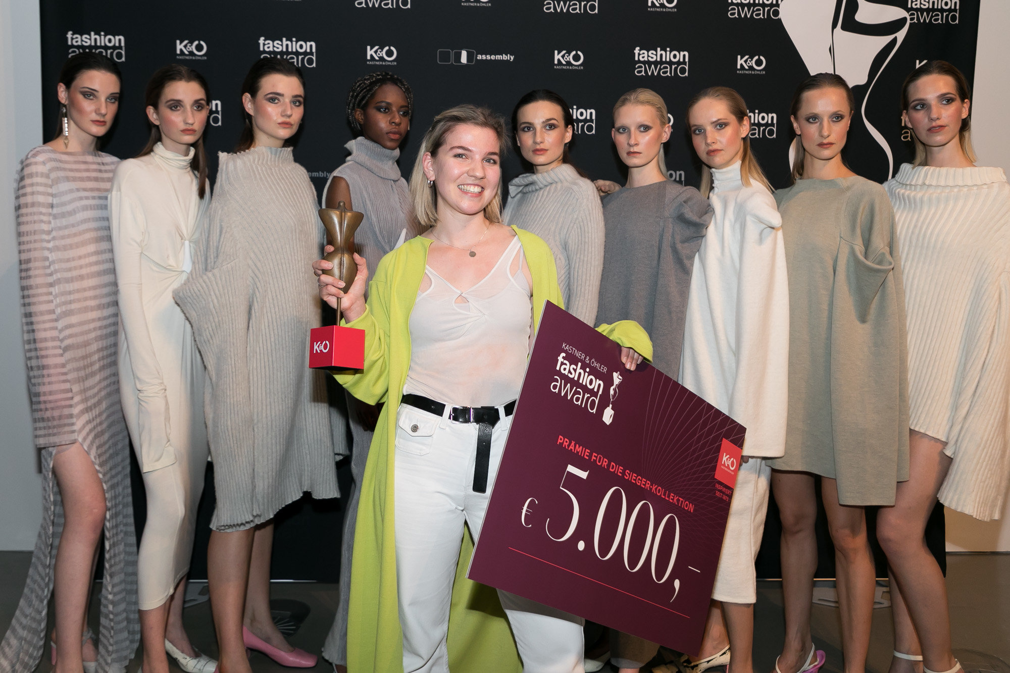Die diesjährige Gewinnerin Christina Seewald wuchs in Graz auf. Sie absolvierte den Bachelor in Textil-Design und anschließend den Master in Knitwear-Fashion auf dem renommierten Central Saint Martins College in London. Nun begeistert die 26-jährige Designerin mit ihrem Können das Grazer assembly-Publikum. Ihre aktuelle Kollektion ist eine Hommage an die weibliche Kunst. Sie zeigt zeitgenössische Knitwear in einem radikalen, neuen Blickwinkel und zeichnet sich durch eine einzigartige Kombination aus edlen Fasern und perfektionierter Schneiderei aus.