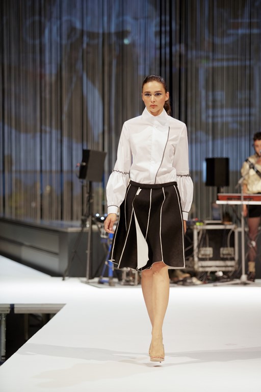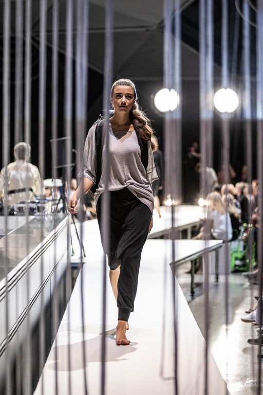 Jury-Mitglied Andrea Krobath über die Siegerin: „Christina Seewald hat es geschafft, ein Thema gesellschaftspolitischer Relevanz in einer stimmigen Kollektion umzusetzen, die trotz minimalistisch eleganter Ästhetik einen humoristisch-ironischen Unterton vermittelt.“ (Foto Oliver Wolf)