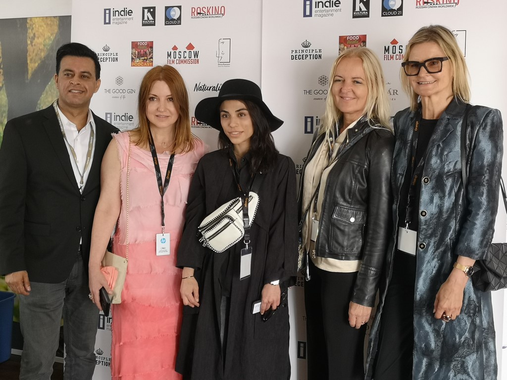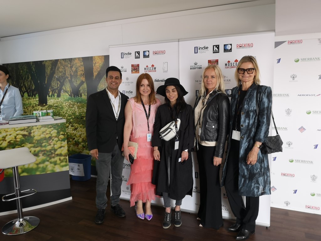 Global Film Showcase/Roskino during the Cannes Film Festival: Gotham Chandna, Nicole Muj, Producer Dena Rassam, Susanne Baumann-Cox – The Good Gin and Journalist&Publisher Hedi Grager (Photo Global Film Showcase 2019)