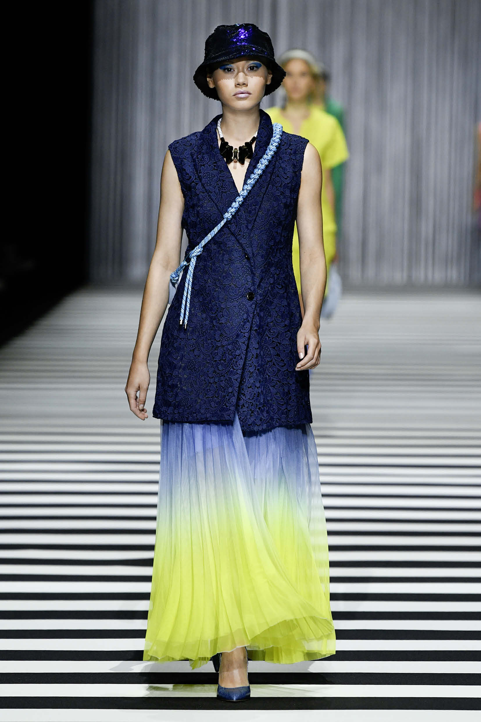 Über den 56 m langen Zebrastreifen-Catwalk liefen insgesamt 42 Models, darunter bekannte Namen wie Caroline Winberg, Kris Gottschalk oder Kenya Kinski-Jones, die Tochter von Nastassja Kinski und Quincy Jones. Mit einer Innenraum-Größe von über 3.000 qm ist das Berliner Velodrom die größte Location, in der