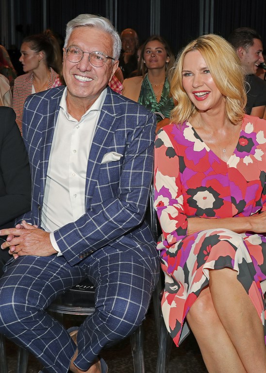 Helmut Schlotterer, Vorsitzender der Geschäftsführung, Gründer und Inhaber von Marc Cain, und Schauspielerin Veronica Ferres genossen die gelungene Fashion Show. (Photo by Andreas Rentz/Getty Images for Marc Cain)