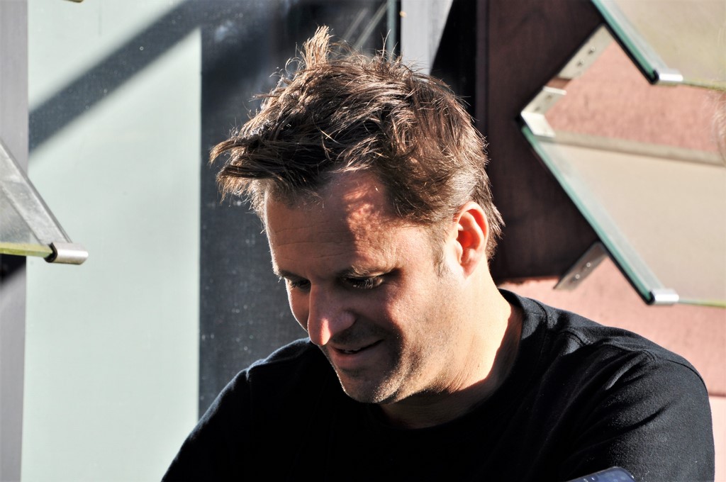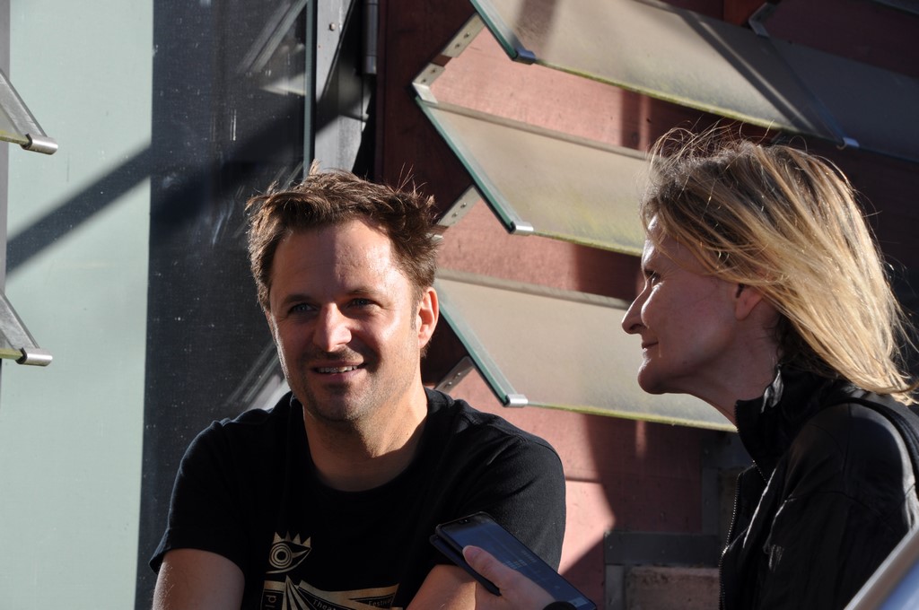 Ich hatte damals das Glück, dass Philipp Hochmair sich vor seinen abendlichen Vorstellungen etwas Zeit zum Plaudern mit mir nahm, obwohl er direkt von einem Dreh in Prag kam und auch schon um 5 Uhr morgens wieder zu Dreharbeiten für „Blind“ in Wien abgeholt wurde. Ich erlebte einen sehr relaxten Schauspieler, leger gekleidet und barfuß, als wir uns ein ruhiges Platzerl für unser Gespräch suchten. Von meinen bisherigen Treffen bei Events kannte ich ihn eher als extrem quirlig. „Ach weißt Du, wenn viel los ist, will man etwas draus machen, sozusagen auf den Wellen reiten“, meinte er dazu.