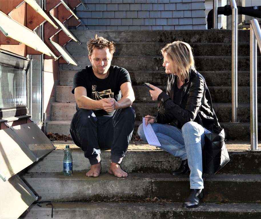 Ich spreche ihn auf einen seiner Aussprüche an, dass gute Kunst gute Energie schafft. Aber was ist gute Kunst? „Das weiß ich nicht, es ist immer ein Experiment, das man vorher nicht kennt. Die Musiker meiner Band und ich haben uns gefunden. Das Greith Haus hat mich gesucht, und jetzt sind wir hier, auch wenn wir dafür einiges verschieben mussten. Und plötzlich gibt es einen guten Spirit. Wenn man locker sein darf, schauen darf, wo Impulse sind, dann entsteht auch etwas Gutes. In der Schauspiel-Schulklasse haben Brandauer und ich zusammen improvisiert, ohne Regeln. Das hat mir so gefallen, dass man sich einfach in eine so positive Energie bringt, mit so positiver Energie arbeiten kann und dieser Strom einen irgendwohin spült. Man weiß oft vorher nicht, wie es ausgehen wird und das ist auch gut so.“