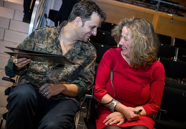 Es ist für mich spürbar, wie sehr Philipp Hochmair Freude daran hat, zwischen seinen Extremrollen zu wechseln. „Das ist ja das Spannende daran. Ich hätte auch nicht gedacht, dass ich heute eine so gute Laune habe, denn ich habe kaum geschlafen. Aber das lädt auch auf. Ich unterhalte mich gerne mit dir, fühle mich hier wohl. Es sind so nette Leute hier und es gibt wunderbare steirische Produkte zu essen. Ich hatte auch ein tolles Telefonat mit Gerhard Roth, seine Tochter hat ja das Projekt in Prag umgesetzt und so schließt sich der Kreis – und solche Zusammenhänge freuen mich.“