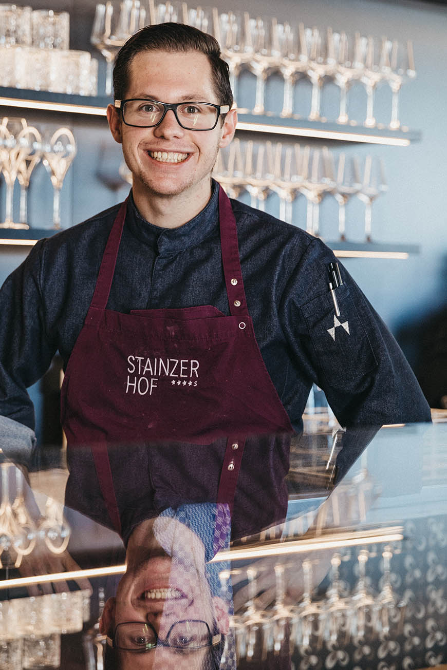 Der 23 Jahre junge und sympathische Oberösterreicher gilt als eines der großen Talente der Branche und arbeitete bereits in hoch dekorierten Betrieben wie dem Gourmethotel Rote Wand in Lech am Arlberg (3 Gault&Millau Hauben), dem Weißen Rössl am Wolfgangsee (2 Hauben) oder zuletzt unter Alexander Posch in der ESSENZZ im Stainzerhof (3 Hauben).