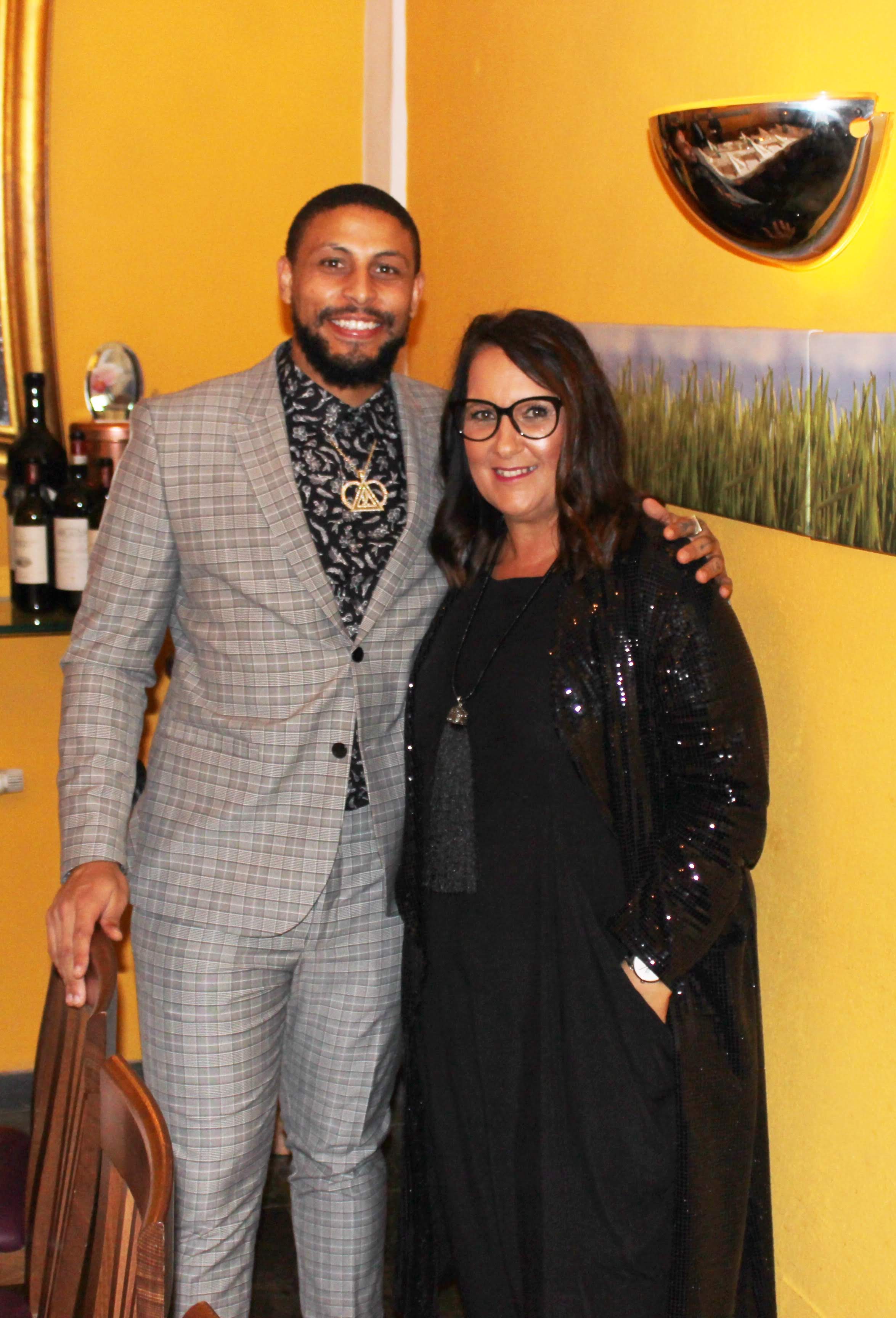 Präsentation der „APPLETINIES NFL Reggie Bell 24 Karat Gold Edition“ – Reggie Bell mit Andrea Ruschka (Foto Andrea Ruschka)