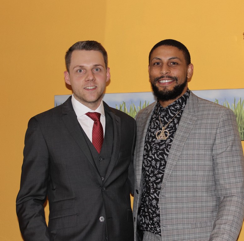 Präsentation der „APPLETINIES NFL Reggie Bell 24 Karat Gold Edition“ – Lukas Wilfling, APPLETINIES, und Reggie Bell. (Foto Andrea Ruschka)