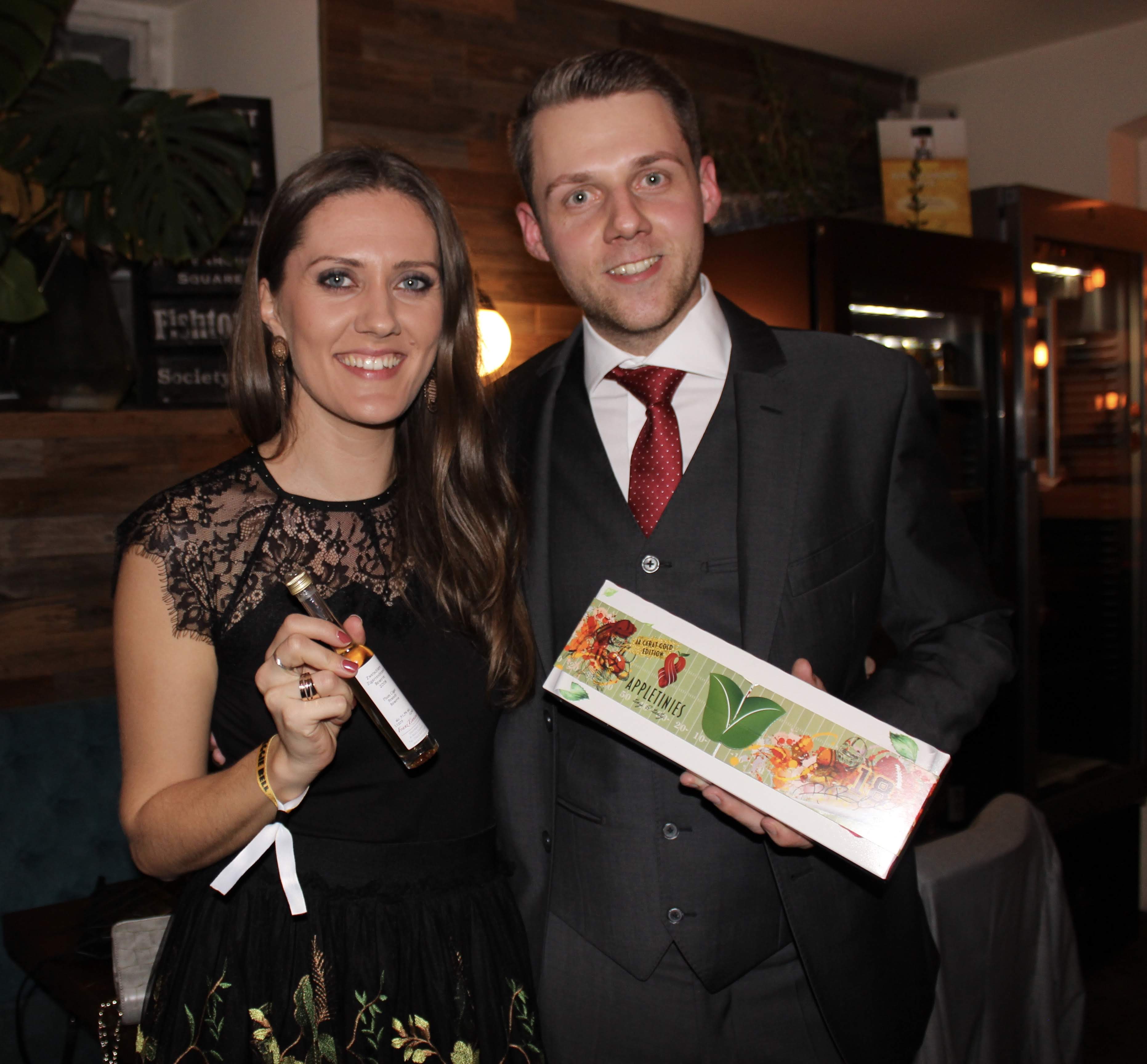 Präsentation der „APPLETINIES NFL Reggie Bell 24 Karat Gold Edition“ – Jesse Raphael und Monika Tinnauer, Die Fruchtbrennerei Tinnauer (Foto Andrea Ruschka)