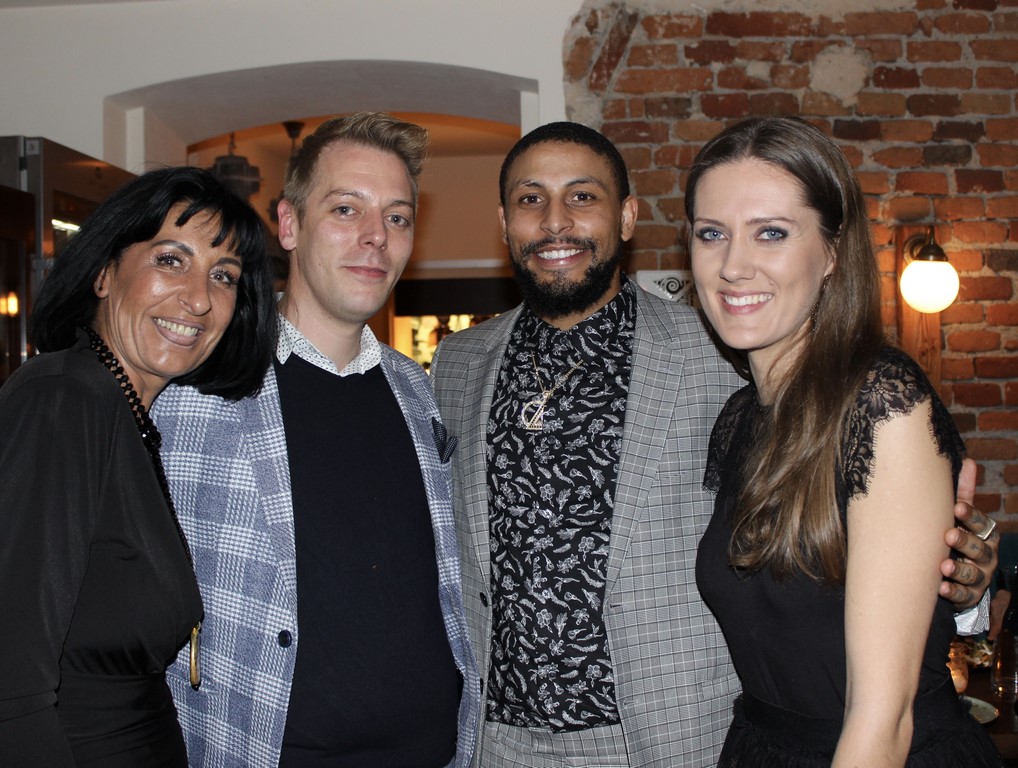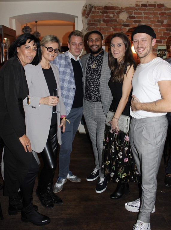 Präsentation der „APPLETINIES NFL Reggie Bell 24 Karat Gold Edition“ – Sabine Friedl, Nägele & Strubell, Herbert Traumüller, Boutique sFinks, Reggie Bell und Monika Tinnauer (Foto Andrea Ruschka)