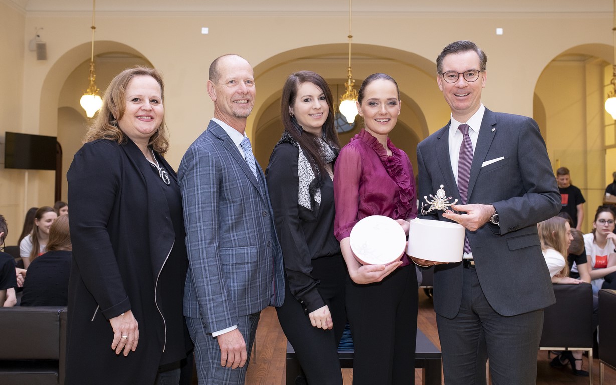 „Alles Glück! Alles Walzer!“ heißt es am 25. Jänner, wenn die Debütan-tinnen mit ihren märchenhaft schönen, von Designerin Eva Poleschinski entworfenen Krönchen die Grazer Opernredoute eröffnen werden. Diese mit 82 funkelnden Swarovski-Kristallen besetzten Krönchen erhielten sie kürzlich von der Designerin und von Klaus Weikhard im Galeriefoyer der Oper Graz überreicht.