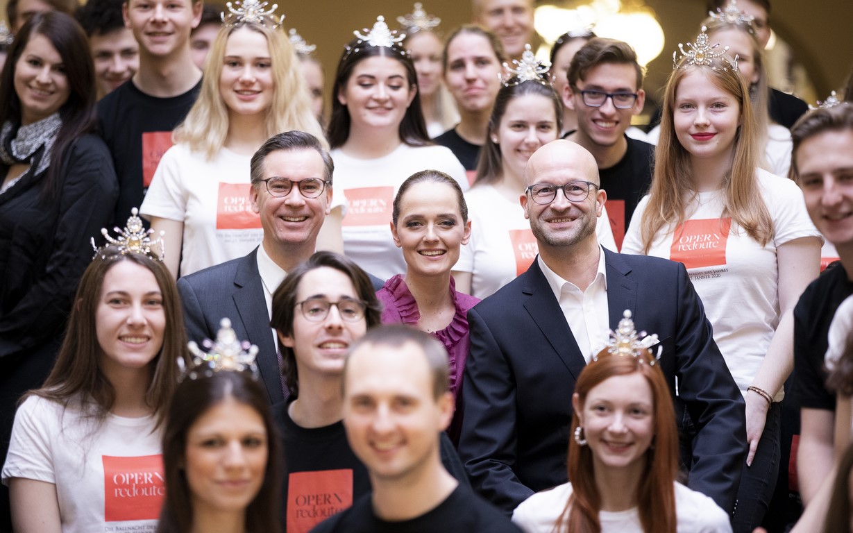 Die Debütantinnen der Grazer Opernredoute bekamen ihr ‚Krönchen‘ von Designerin Eva Poleschinski und Klaus Weikhard überreicht. (Foto Opernredoute / Marija Kanižaj)