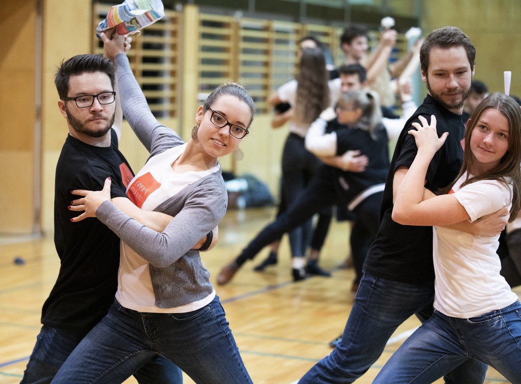 Die diesjährigen Choreographen der Eröffnungspolonaise sind Claudia Eichler, Lisa Weswaldi-Eichler und Klaus Höllbacher Polonaiseprobe. (Foto Opernredoute / Marija Kanižaj)