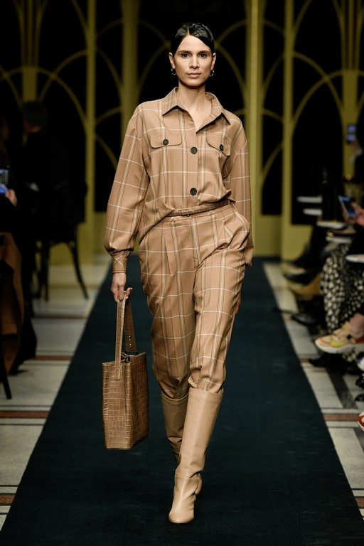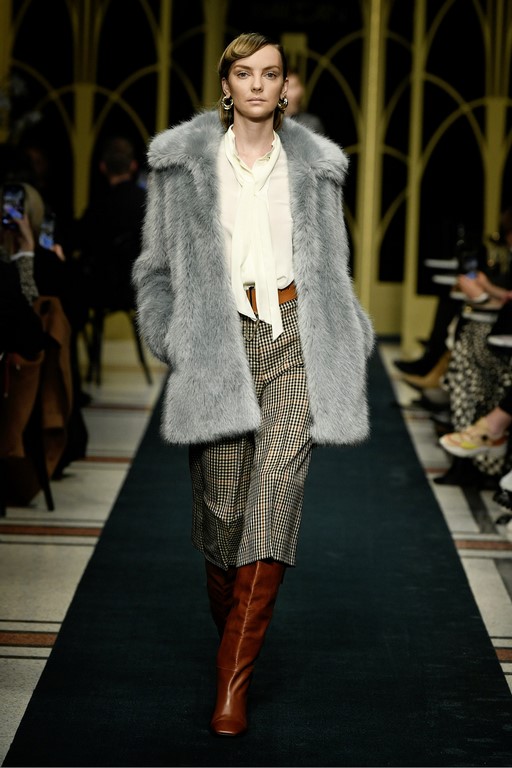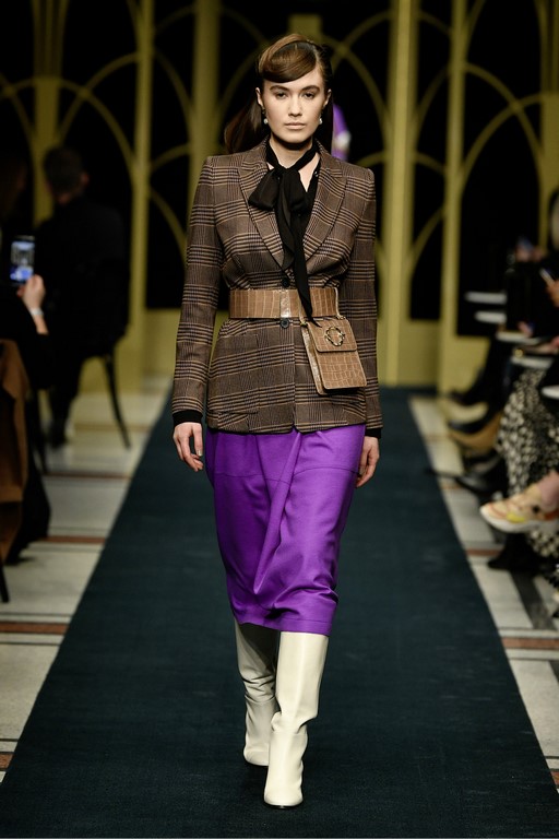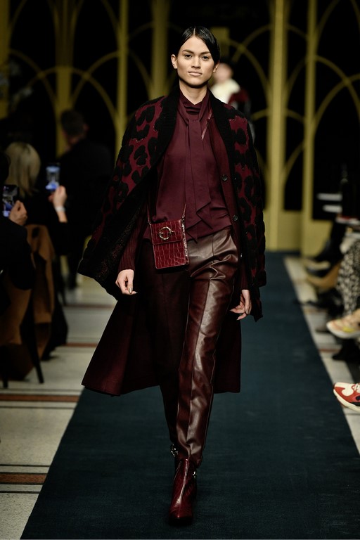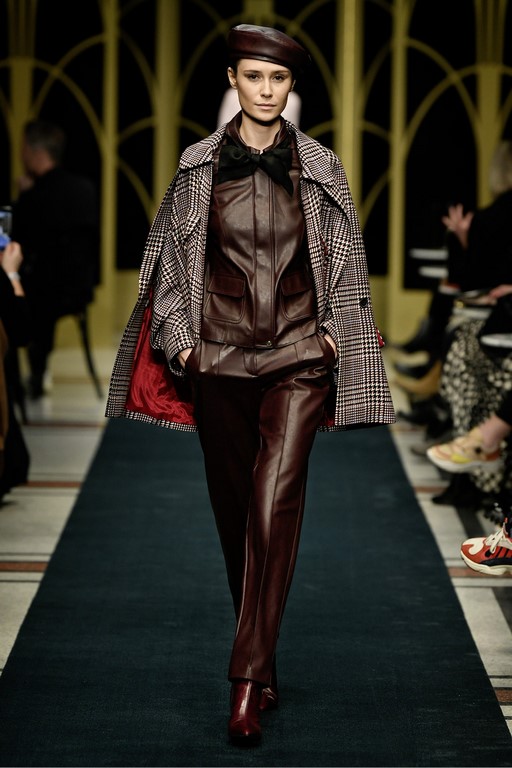Die Marc Cain Collections interpretiert im Herbst/Winter 2020 Néo-Bourgeois Einflüsse im modernen Stil und zeigt eine zeit-genössische Opulenz in den Outfits. Hochwertig gearbeitete Capes und Ponchos sind modernisierte Klassiker, die im Herbst dem Mantel Konkurrenz machen. Die Culotte präsentiert sich nun verkürzt, gestrickt, aus Walkwolle als Weiterführung in trendi-ger Form als Hosenrock mit eingearbeiteter Falte für zusätzliches Volumen. Anzüge orientieren sich in Form und Farbgebung teilweise an klassischer Menswear mit kantigen Schultern und ausgearbeite-tem Revers. Hemdjacken werden lässig in der Taille gegürtet. Feminität kommt in die Looks vermehrt über die Bluse. Rüschen, Volants, Biesen – alles, was schmückend ist, ist erlaubt.