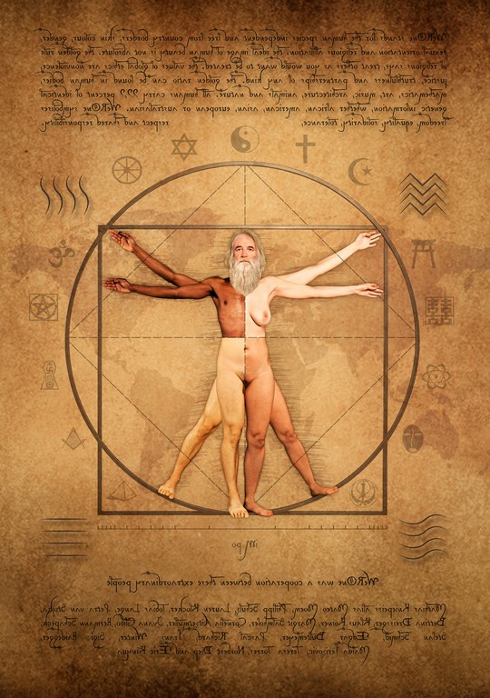 Mathias hat nun insgesamt 1 Jahre am Projekt „weROne“ gearbeitet. Er fand 20 außergewöhnliche Menschen, mit denen er gemeinsam Leonardo da Vinci´s Meisterwerk analysierte und darauf basierend das Kunstwerk „weROne“ entwickelte, in welchem Menschen unterschiedlicher Herkunft, Hautfarbe, Kulturen, Altersgruppen, Geschlechter und Religionen symbolisch vereint werden.