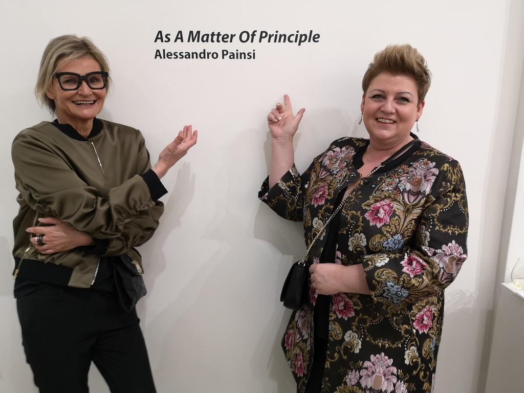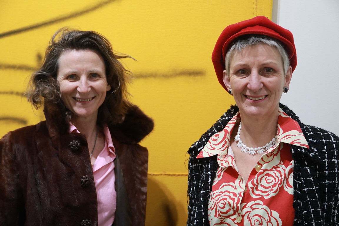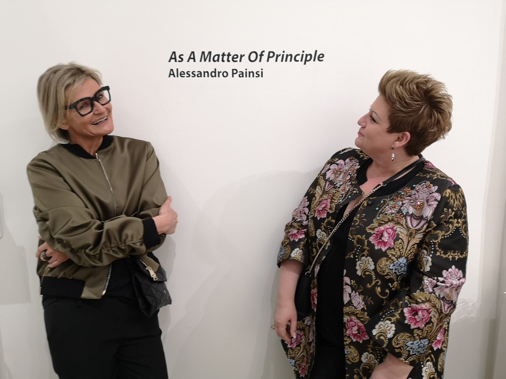 Solo-Ausstellung des Künstlers Alessandro Painsi in Los Angeles. Journalistin Barbara Gasser in Begleitung ihrer Schwester (Photo Eric Minh Swenson)