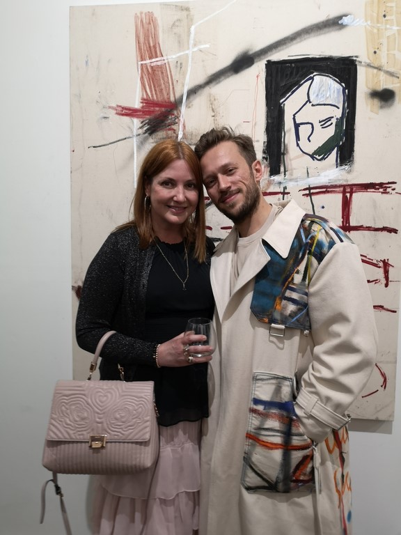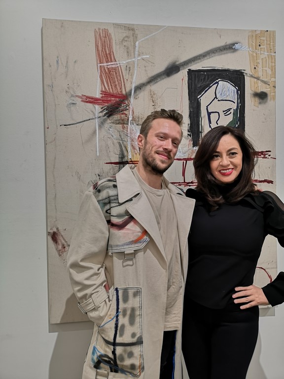 Die Ausstellung von Alessandro war curated by Anne Avramut. Auf meine Frage an sie, wie sie auf ihn aufmerksam wurde, erfahre ich folgendes: „Kennengelernt haben wir uns über einen Sammler, der mich bei einer Ausstellung von mir in der Rotgasse in Wien auf ihn angesprochen hat. Er hat gemeint, er kenne da einen jungen, dynamischen und sehr guten Künstler und er denkt, wir könnten gut miteinander arbeiten. Er hat dann die Verbindung hergestellt. Wenige Wochen später ist Alessandro nach Wien gekommen und wir haben uns zum ersten Mal kennengelernt. Das war knapp vor Weihnachten 2018, unterschrieben haben wir dann Anfang Mai 2019, in NY.“