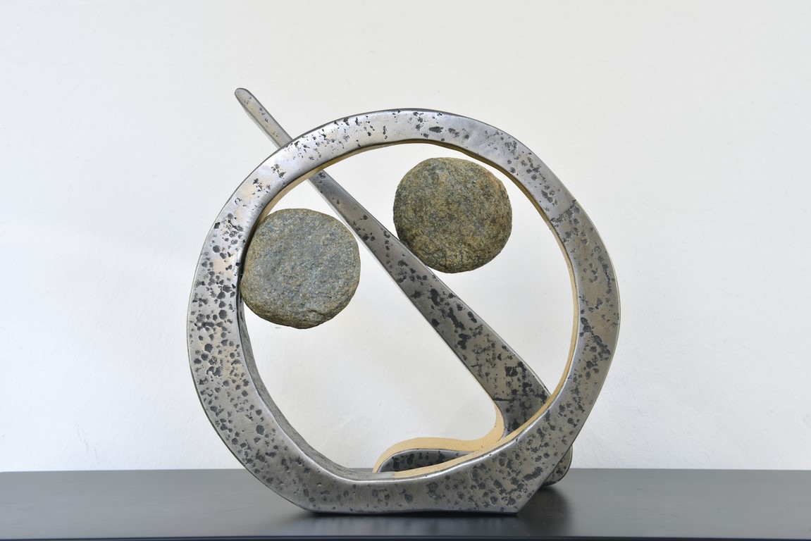 Theresias größte Skulpturen sind 3,40 m hoch, der Gerber und die Gerberin. Diese stellte sie im Gerberhaus in Fehring aus. „Ausgang war das romanische Gerberhaus, in dessen Keller noch ein Gerberbecken steht. „Meine Ausstellung hieß Bassin und war eine Referenz ans Haus und die Giesserei meiner Eisen Skulpturen.“ Diese Skulpturen standen im August 2017 unter den Arkaden des Rathauses in Pula, im Zuge ihrer Ausstellung ,soundsONliqiud‘ in der Galerie Cvajner, jetzt sind sie bei Theresia – und freuen sich auf einen Käufer. Wie viele andere ihrer so vielfältigen Kunstwerke.