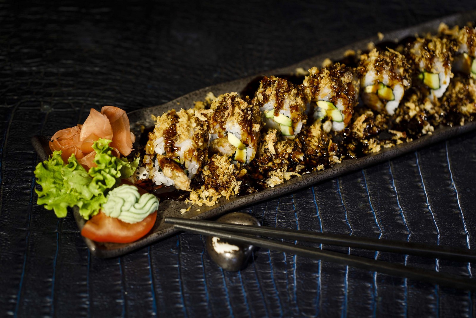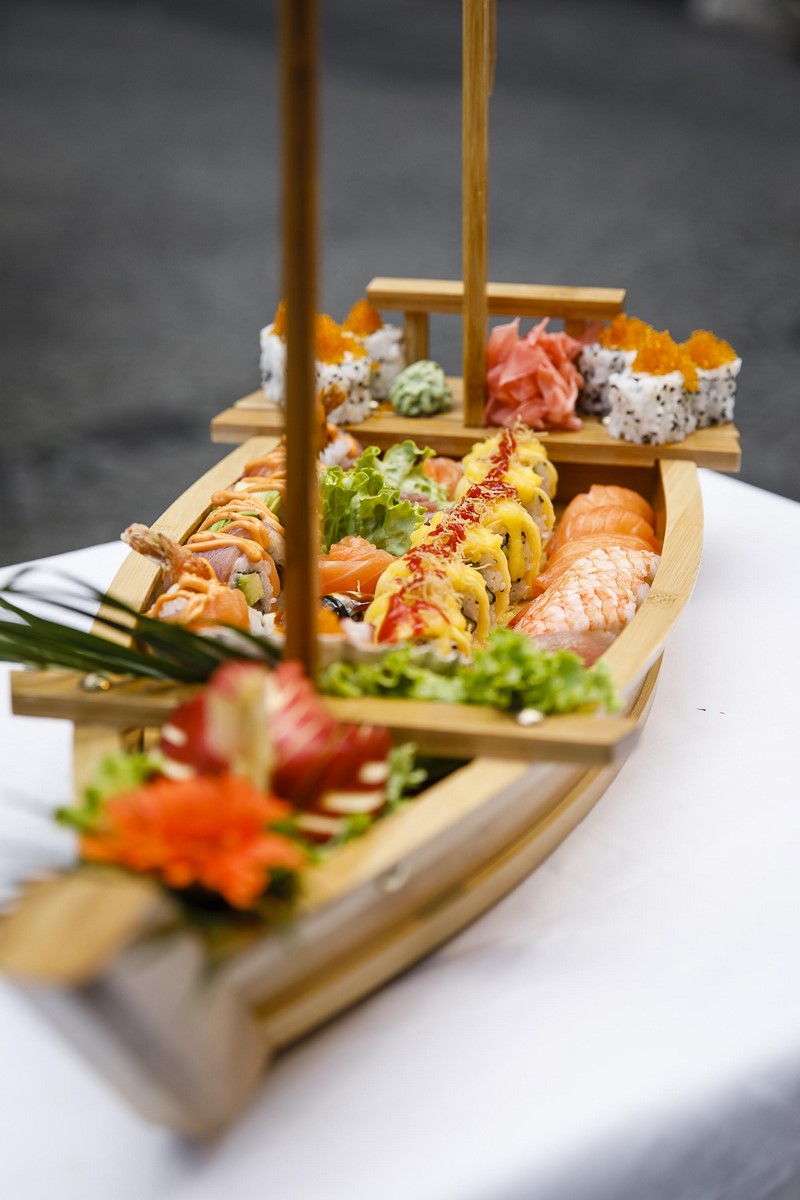 Neben klassischen werden auch moderne Sushi-Variationen wie zum Beispiel California Roll, Dragon Roll Special, Glockenspiel Roll, Nigiri, Sashimi oder Tuna Tartare serviert. Auch warme Gerichte wie Tofu Miso Wakame Suppe, Edamame oder zwei verschiedene Bowls stehen auf der Karte. Für den süßen Abschluss sorgen Mochi oder ein Machta Cake.