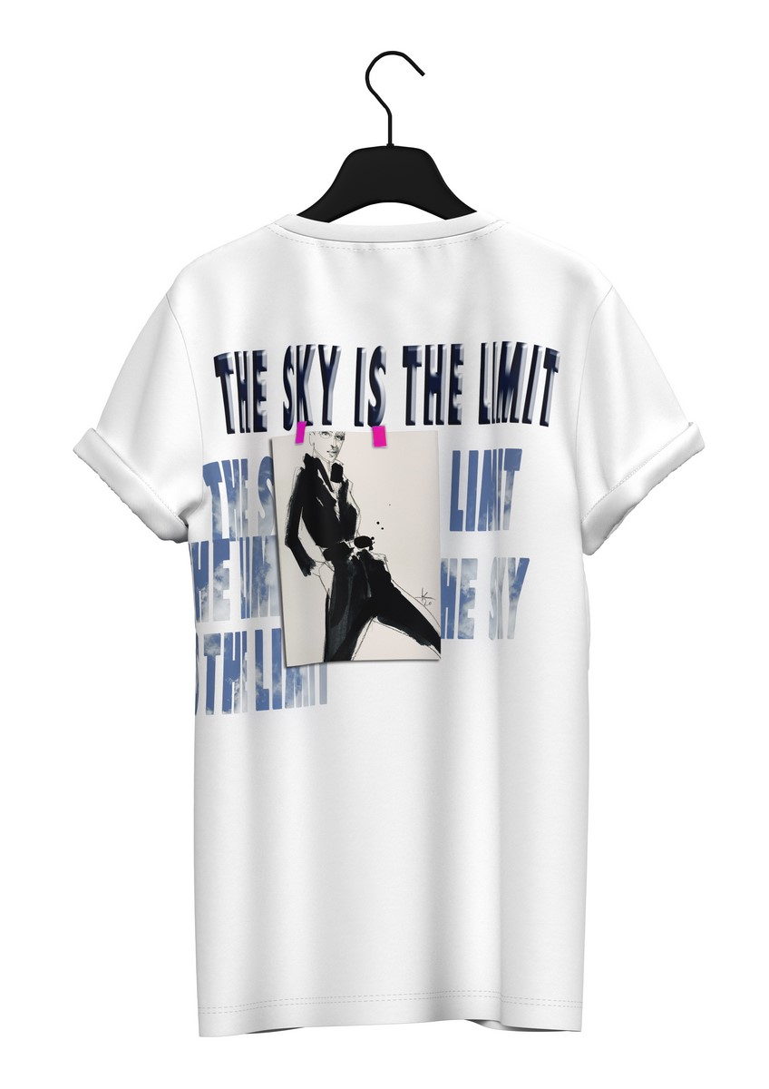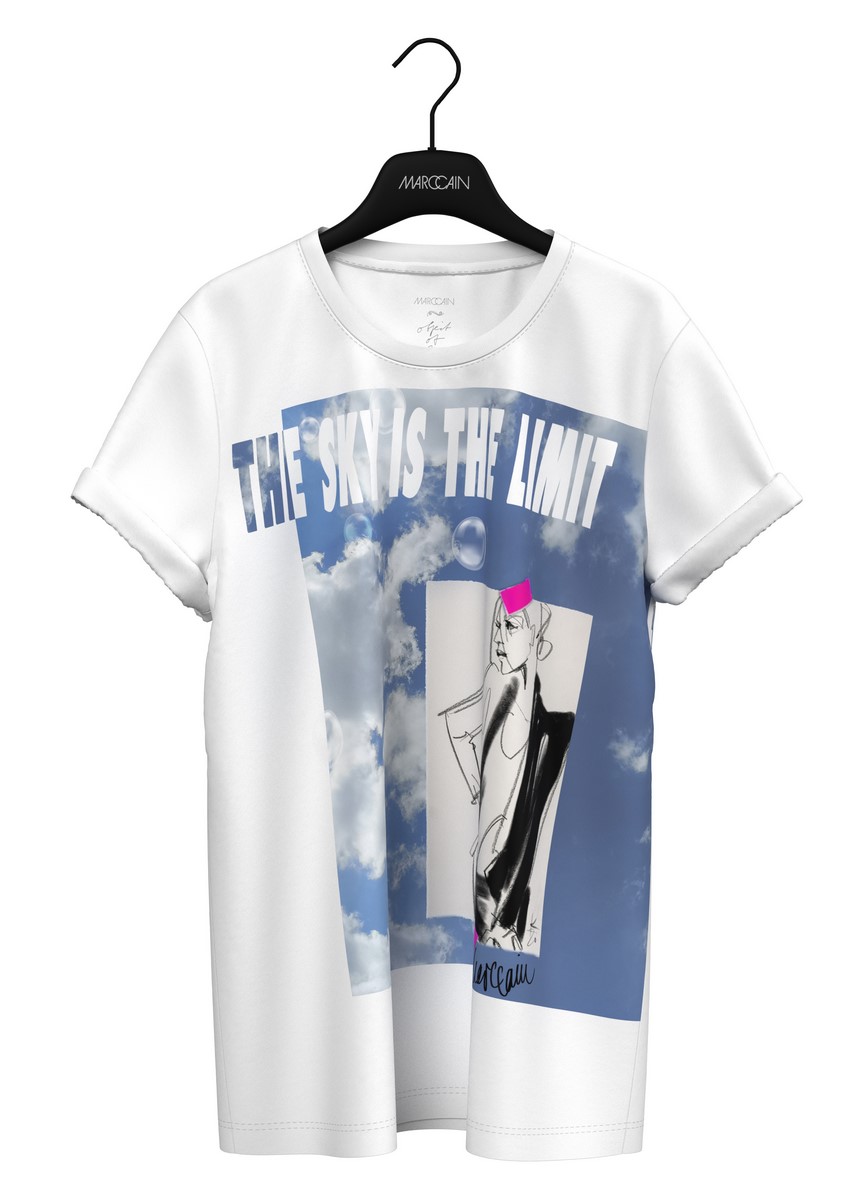 Mit dem Limited Edition Shirt, das exklusiv für den Fashion Film entworfen wurde, möchte Marc Cain allen Fans der Marke eine besondere Freude bereiten. Der aufgedruckte Slogan „The sky is