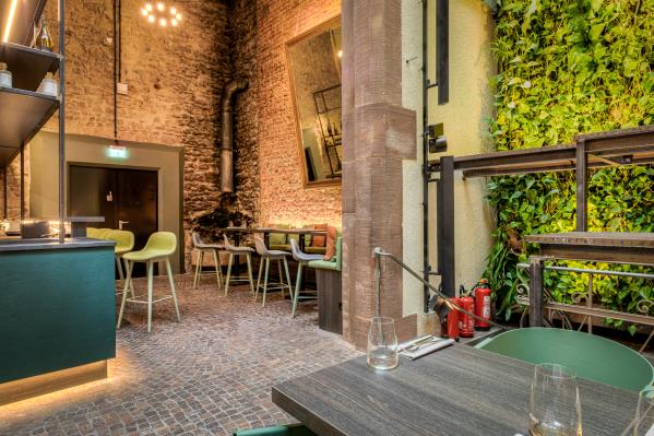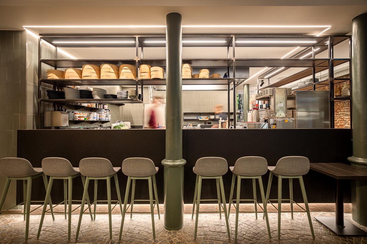 In kreativer Zusammenarbeit mit dem Bauherren entwickelten die in Tirol ansässigen MEISSL Architects passend zum kulinarischen Konzept eine extrem geradlinige und reduzierte Sprache für das neue Szenelokal Freiburgs. Das zum Teil denkmalgeschützte Gebäude direkt neben der Markthalle bot neben einigen baulichen Herausforderungen auch ein enormes gestalterisches und räum-liches Potential, das sich in der durchdachten Zonierung und in der warmen Atmosphäre widerspiegelt: Herzstücke des Lokals sind die offene Küche im vorderen Bereich, sowie die sechs Meter hohe Bar im rückwärtigen Teil.