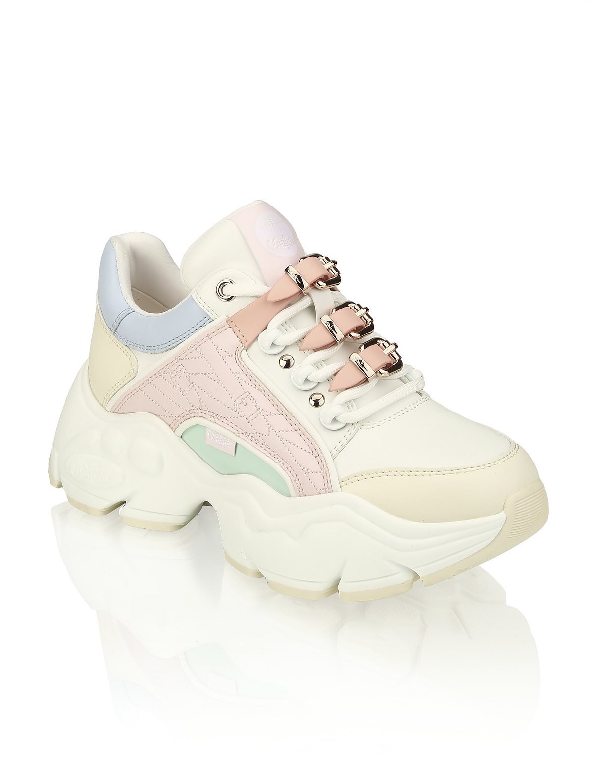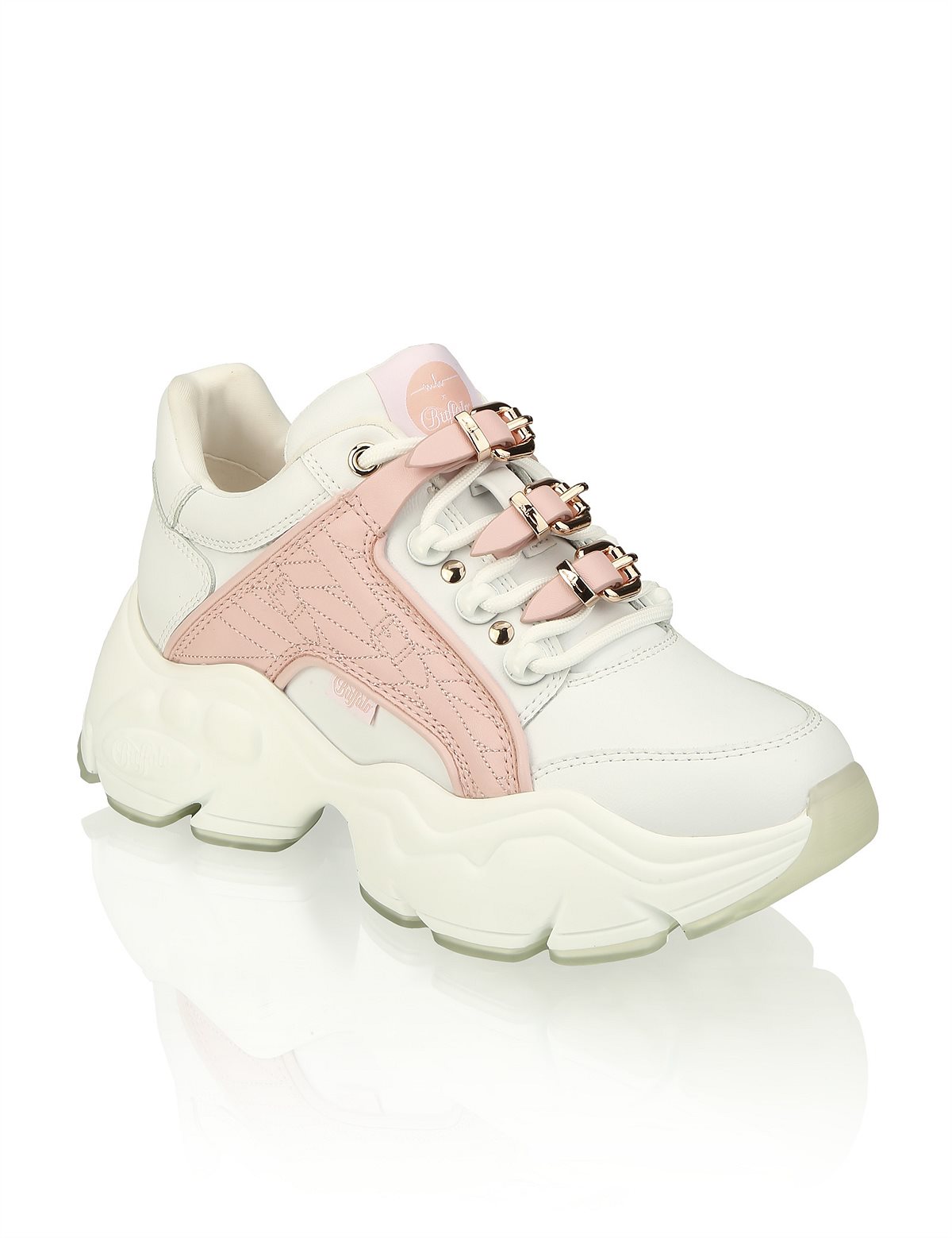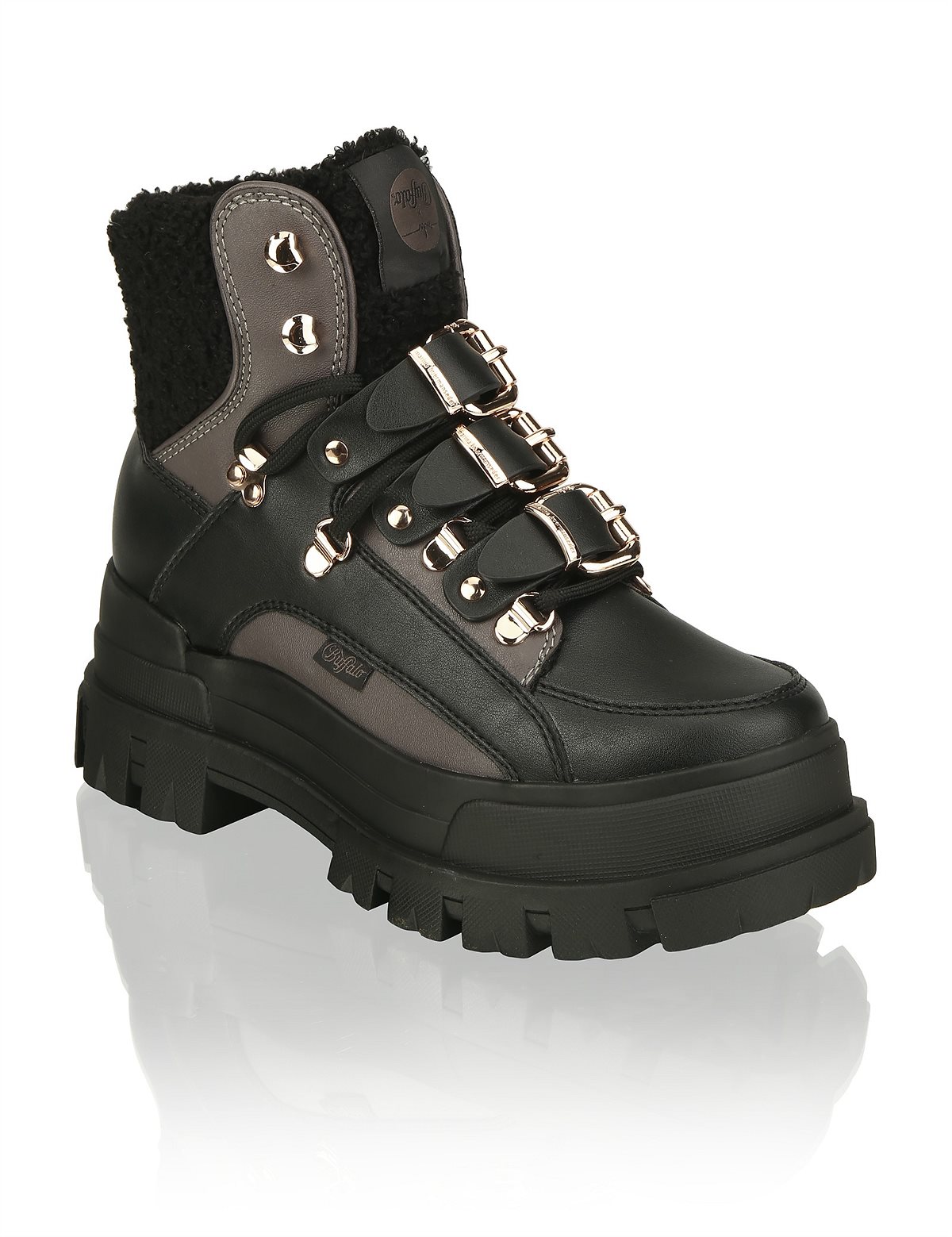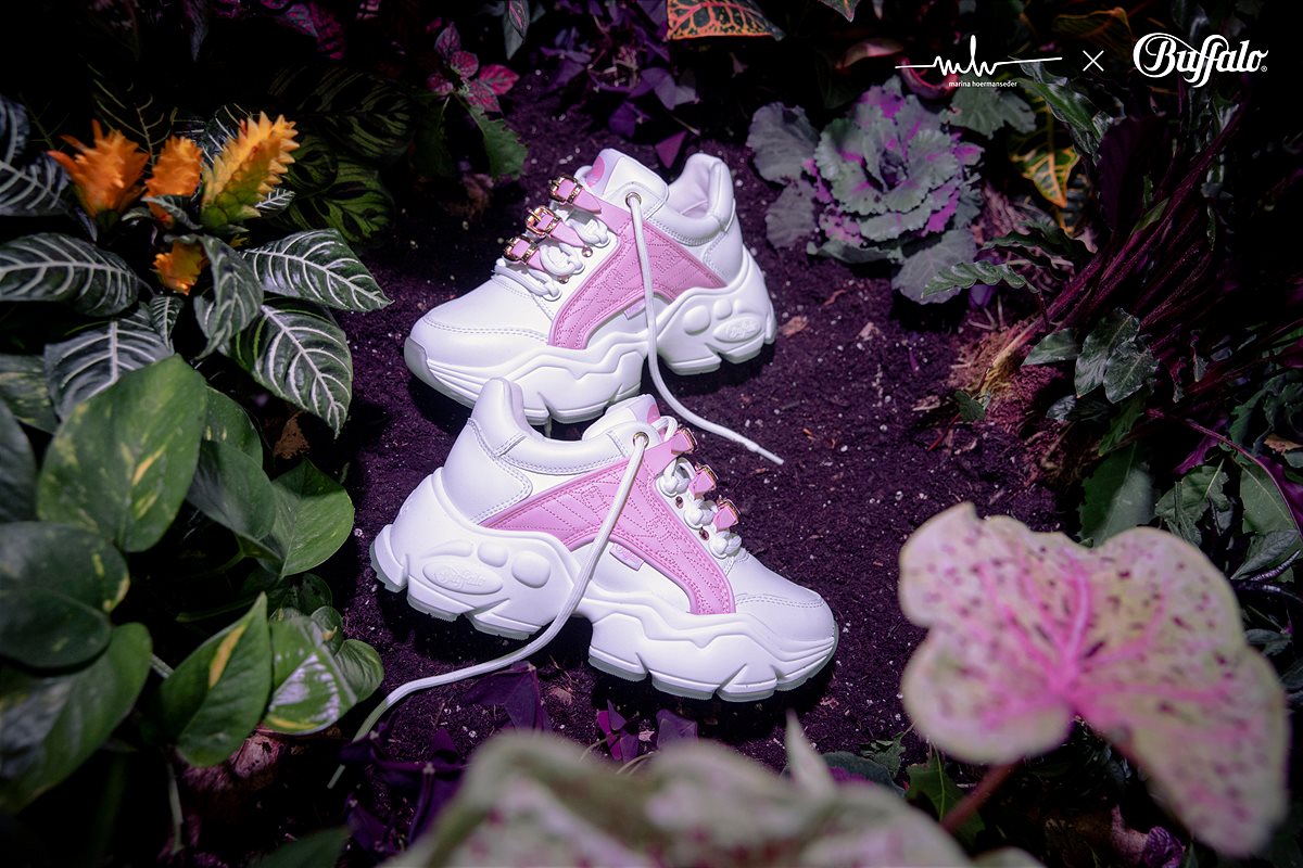 Nach dem großartigen Erfolg der ersten Kooperation zwischen Marina Hoermanseder und BUFFALO – innerhalb der ersten 48 Stunden waren vier der sechs Styles ausverkauft – entwarf die Designerin nun schon ihre zweite Kollektion für BUFFALO. Auf Plateau-Sneaker mit gepolsterter Sohle und derben Boots, die bis zum Knöchel reichen, hinterließ sie ihr unverkennbares Schnallen-Design.