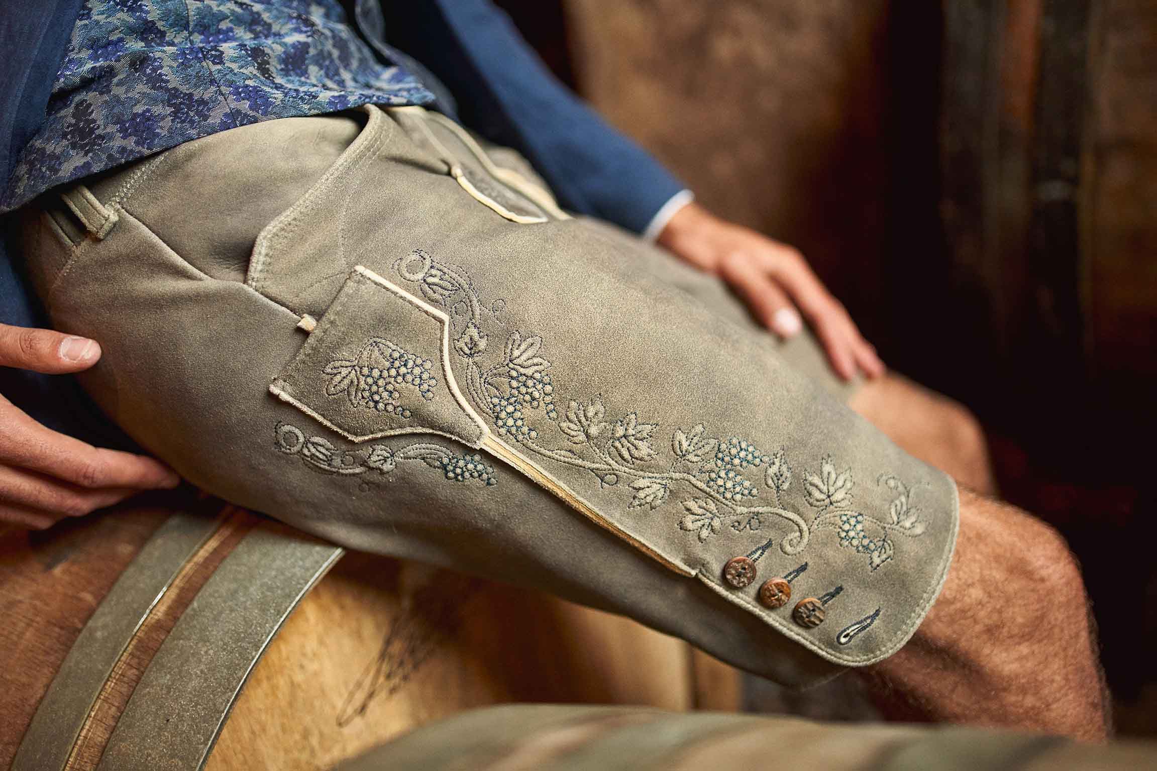 Die 1. Winzer-Lederhose® ist ein neues Projekt des steirischen Familien-Modeunternehmens Mothwurf, das die Stärke und den heimatverbundenen Stil der Steier-mark widerspiegelt. Produziert wird sie vom Traditionshaus Meindl. Einen prominenten Kooperationspartner fanden sie im südsteirischen Weingut Tement – eine neuartige und großartige Verbindung von Mode und Genuss.