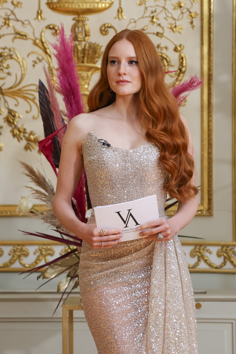 Model und Schauspielerin Barbara Meier führte in einem Kleid der Designerin Eva Poleschinski charmant durch die Vienna Awards for Fashion and Lifestyle 2020. (Foto Katharina Schiffl)