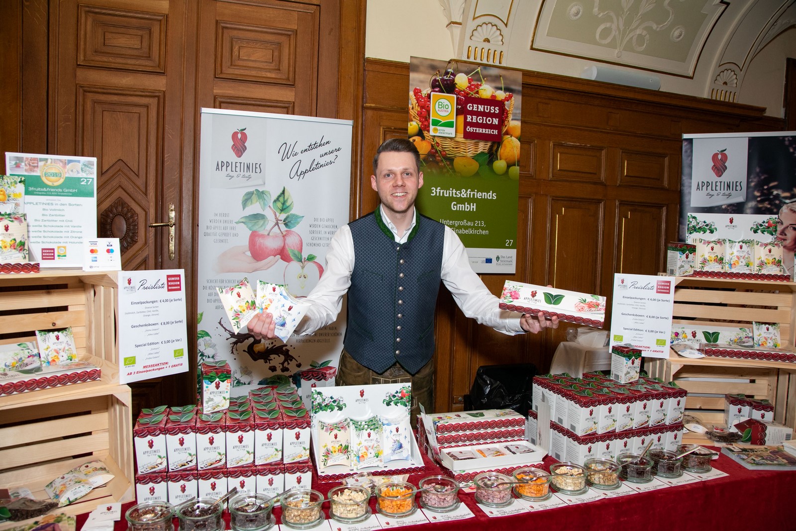 Appletinies goes worldwide – Nach Kanada, Dubai und Taiwan gibt es die köstlichen APPLETINIES nun auch in den USA. Die schonend getrockneten Bio-Apfelstücken, umhüllt von zart schmelzender Bio-Schokolade, gehören zu den süßesten Versuchungen der Steiermark. Beste Qualität und der Nachhaltigkeits-Gedanke werden bei Sonja Wilfling und ihrem Sohn Lukas hoch geschrieben. Und dass sich Qualität lohnt beweist sich mit Auftritten in den Gift Suites bei den Golden Globes 2018, an der ‚APPLETINIES NFL Reggie Bell 24 Karat Gold Edition‘ mit NFL Footballer Reggie Bell, an exklusiven Kooperationen und Events mit ARIDO, welche unter Insidern für die weltweit exklusivsten ‚art jewels‘ bekannt sind.