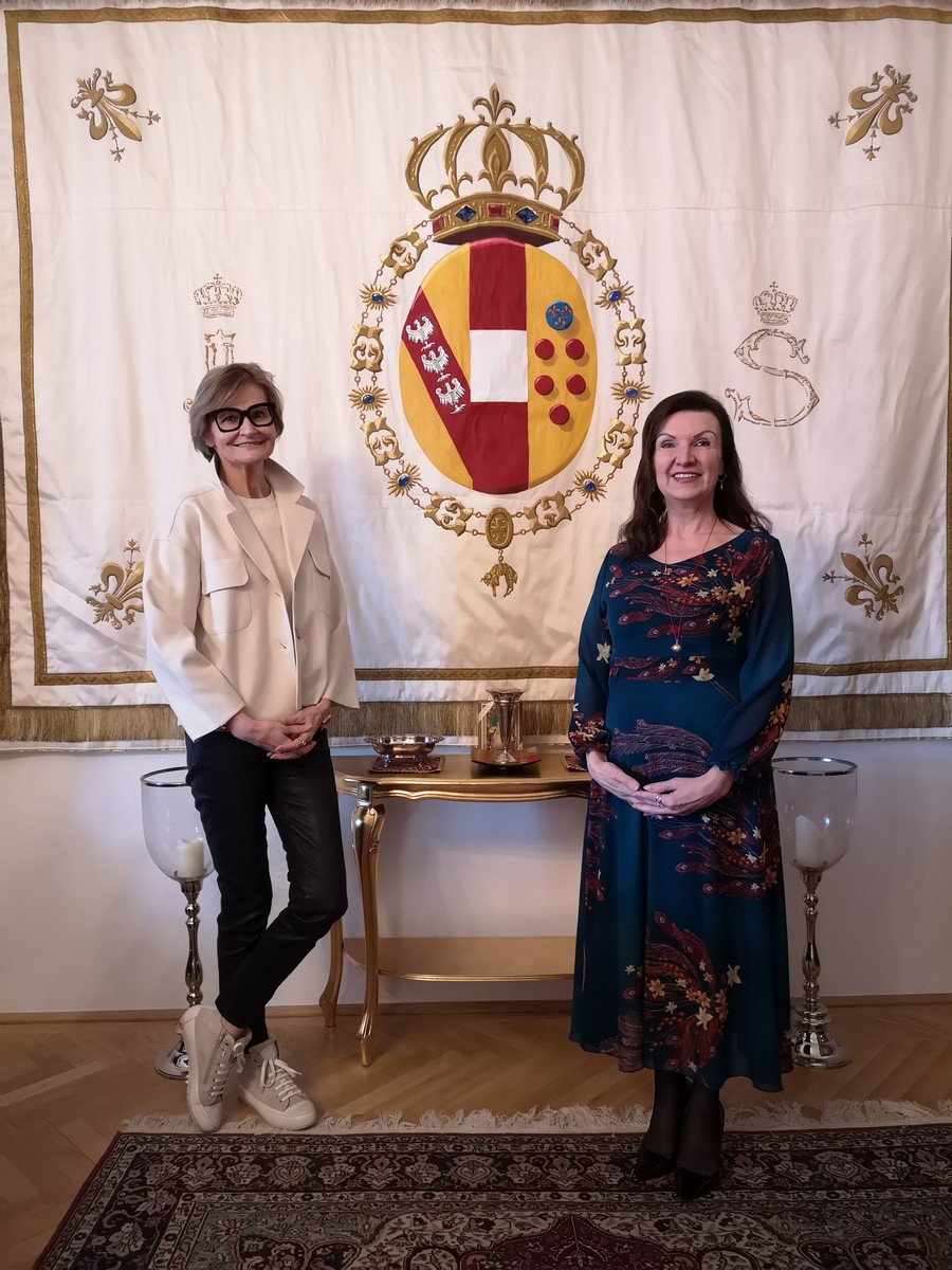 Herta Margarete von Habsburg-Lothringen und ihr Mann Sandor haben ihren Hauptwohnsitz in Liechtenstein, fühlen sich aber auch im Schloss Schönbrunn und in ihrem Jagdschlösschen in Niederösterreich zu Hause. „Vor Corona war ich wegen der zahlreichen Repräsentationsverpflichtungen natürlich sehr viel im Ausland unterwegs“, erklärt mir die Gründerin und Präsidentin von ‚Flame of Peace‘. Diesen gemeinnützigen, überparteilichen sowie religionsunabhängigen Verein ‚Flame of Peace‘ gründete sie zur Förderung und Auszeichnung von Frieden-stiftenden Maßnahmen und Personen, die sich um den Frieden in der Welt verdient machen. Seit 2003 gibt es dafür auch die Skulptur ‚Flame of Peace‘ als Award-Preis.