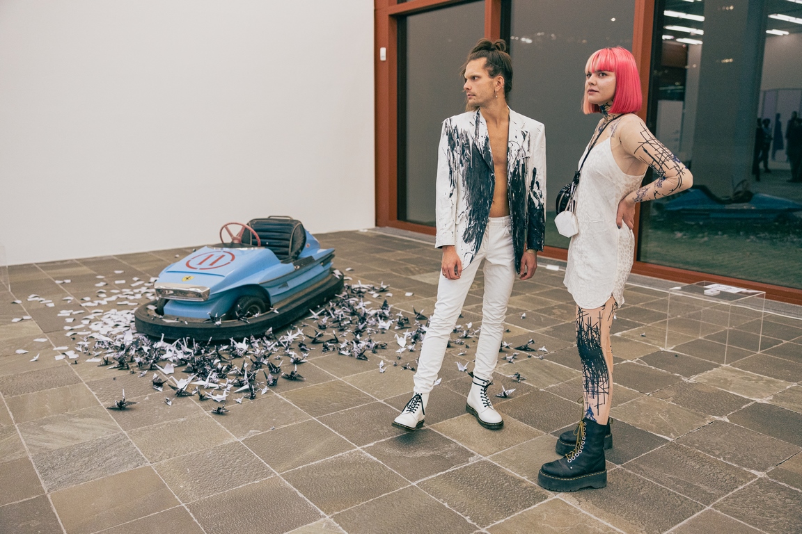 Neben Filmscreenings und Installationen waren die Gäste dazu eingeladen, Live-Vorführungen an Models und Performances zu erleben und damit in die Arbeitswelt und Ästhetik der unterschiedlichen Designpositionen einzutauchen.