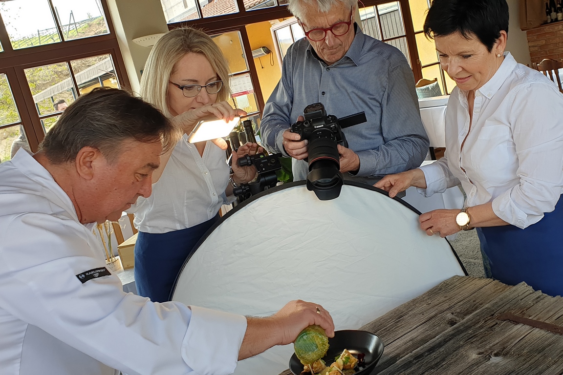 Die Fotos stammen von Ulrich Schneebauer, der die haubengekrönten Gerichte so gekonnt ins rechte Licht gesetzt hat, dass einem buchstäblich das Wasser im Mund zusammenläuft. „Ich habe das sehr gerne gemacht und fühle mich jetzt als „Club-Schwester“, lacht der sympathische Fotograf. Die richtigen Worte für die Südsteiermark, die Köche mit ihren Restaurants und die Winzer fand Soroptimistin Mag. Andrea Kager-Schwar, Direktorin der Bischöflichen Gutsverwaltung Schloss Seggau. Das anspruchsvolle Layout wurde von Annette Uhl, Uhl Design, gestaltet.
