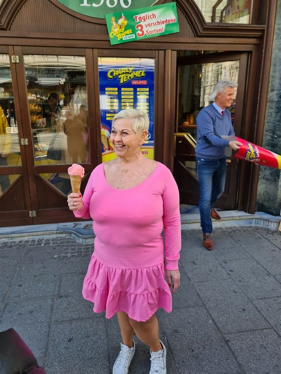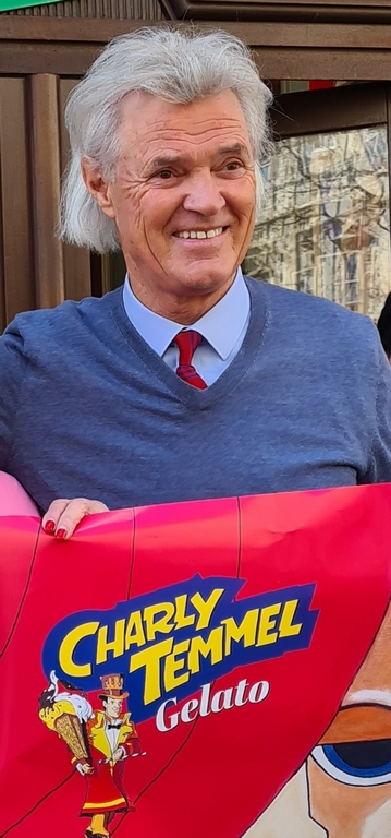 Jedes Jahr lädt Charly Temmel einen beliebten Künstler für die Gestaltung des Eis-Posters ein. Waren es in den letzten Jahren die Sängerin Monika Martin oder oder Realkubist Herbert Wallner ist es heuer Unterhaltungskünstlerin Jazz Gitti, die das neue Eis-Poster für die Charly Temmel Eissalons gestaltete. Es ist ihr Erstlingswerk und mit einem Lachen meinte sie: „Ich habe gar nicht gewusst, dass ich malen kann“. Ihr Lieblingseis ist ein Heidelbeer-Eis, wie sie verriet.