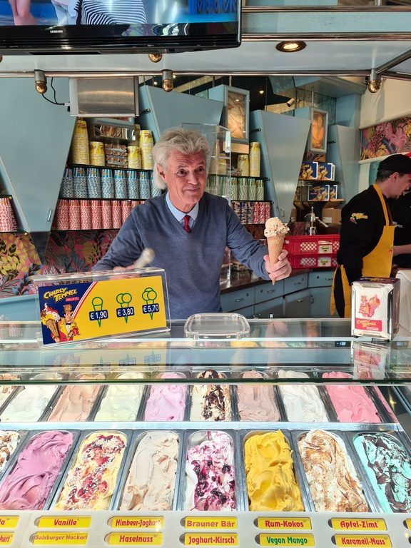 Natürlich gibt es für Eisliebhaber auch wieder neue Eis-Sorten wie z.B. ‚Germknödel‘, ‚Nutella‘ und ‚Salzburger Nockerl‘. „Neu sind auch unser ‚Brauner Bär‘, ein Karameleis mit durchgezogener Schokolade, oder ‚Apollo‘, eine spritzige Waldbeermischung“, erzählt Charly Temmel begeistert. Auch vegane Sorten sind wieder im Sortiment enthalten.