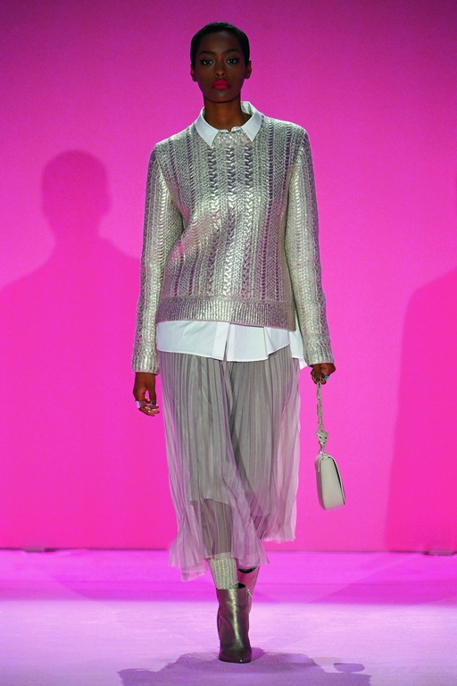 Ganz am Ende der Show löschte Marc Cain das Licht und der Song „Russians“ von Sting erklang. Als das Licht wieder eingeschaltet wurde, standen alle 47 Models nochmals gemeinsam auf der Bühne – mit geöffneten Handflächen, auf die das Peace-Zeichen aufgemalt war. Ein klares Statement für Frieden und Toleranz – gegen Krieg und Gewalt.