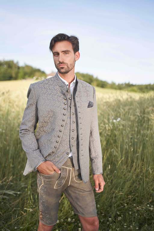Auch die Herrenkollektion setzt diese Saison neben den typischen Tönen wie Tannengrün auf kräftiges Azurblau, edles Oliv, sowie helles Grau. Die dreidimensionalen Jacquards sind wichtige Stoffe der neuen Herrenkollektion.