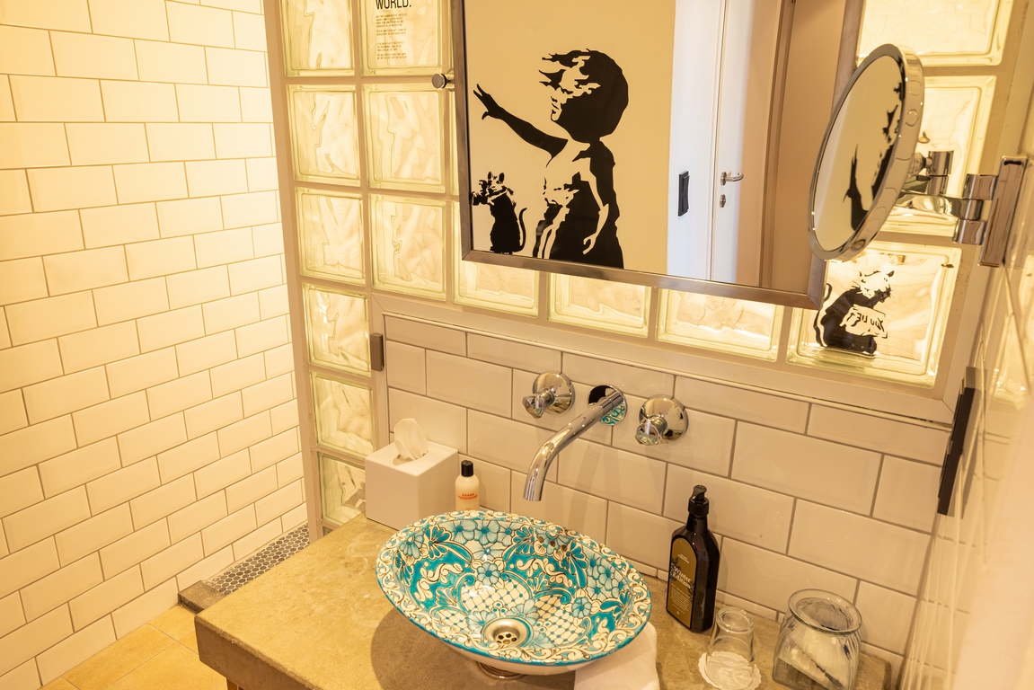 Die Lockdowns bedeuteten insgesamt mehr als ein Jahr Schließung des Hotels. „Natürlich hatten wir trotzdem einiges zu tun, aber wieder für Gäste zu arbeiten macht viel mehr Freude“, betont die Hoteldirektorin nochmals mit einem glücklichen Lachen. „Die „Stehzeit“ haben wir aber gut genutzt für neue Projekte wie dem Salon Marie und der Salon Marie Bar, natürlich auch für das Banksy-Zimmer und andere Verbesserungen. Wir mussten aber erkennen, dass es durch die dauernden Stopps nicht möglich war, größere Projekte durchzuziehen. Aber step by step geht alles und wir lernten immer dazu“, lacht Natascha Weber. „Jetzt möchten wir die Salon Marie Bar und die Lounge neu beleben. Dafür wird es im Sommer „After Work-Zeiten“ geben mit kleinen Häppchen, aber auch neue Speisekarten. Natürlich sind vegetarische und vegane Gerichte fixer Bestandteil auf den Karten all unserer Restaurants. Alles soll zwar elegant wirken, aber auch bodenständig bleiben.“ Ihr ist klar, dass man nicht stehenbleiben darf und den Gästen immer wieder was Neues bieten muss. „Auch wenn alles gut und bestens funktioniert, ist es für uns enorm wichtig, dass wir uns mit eigenen Schwerpunkten etwas abheben: sei es mit Kunst, neuen Speisekarten und Überraschungen in der Bar.“