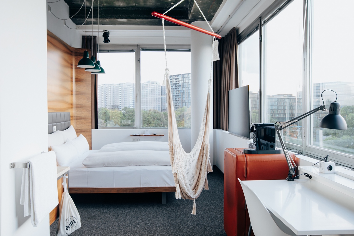 Während man im Wiener Grand Ferdinand Lobmeyr Luster, Thonetstühle und extravagante Details wie eine Oase im Innenhof und einen Rooftop Pool mit Aussicht findet, reizt die 360-Grad-Aussicht der Weitzer-Sauna über den Dächern von Graz. Spektakulär ist auch die Duschlandschaft im runderneuerten Fitnessbereich. Ein LoftCube findet man am Hoteldach des Daniel Graz, ein Segelboot von Erwin Wurm auf dem Daniel Wien. „Und wir haben unsere interessanten Kunstinstallationen im gesamten Hotel Wiesler“, freut sich die Hotelchefin. „Dazu gehört u.a. die Rauminstallation „Jigsaw falling into place“ von Clemens Hollerer in der Lobby. Seine komplexe Konstruktion aus lackierten Holzlatten geht eine gelungene Symbiose mit unseren Jugendstilmauern ein.“ Ebenfalls interessant sind die Streetart-Geschichte und das Banksy-Zimmer mit Werken des britischen Graffiti-Künstlers im 5. Stock des Grand Hôtel Wiesler, das über die Grazer Ausstellung hinaus bleiben wird.