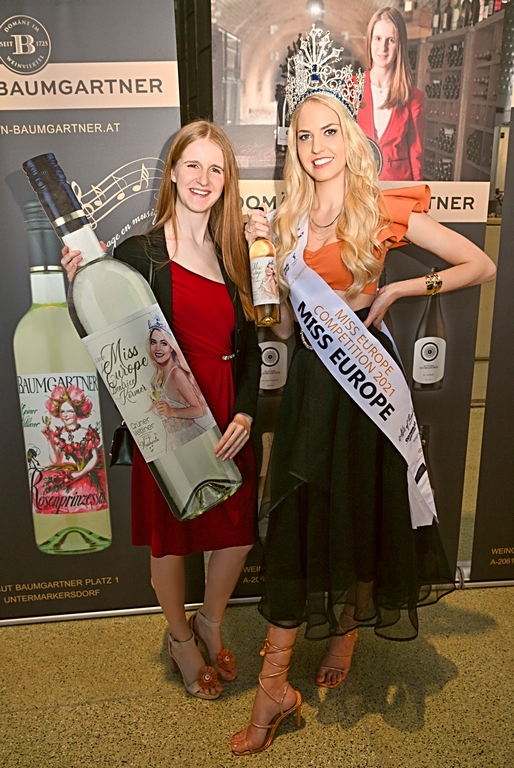 Großes Beitragsbild: GRÜNER VELTLINER EDITION „MISS EUROPE BEATRICE KÖRMER 2021. Jungwinzerin Katharina Baumgartner und Miss Europe, Sängerin und Model Beatrice Körmer. (Foto Beatrice Körmer privat)