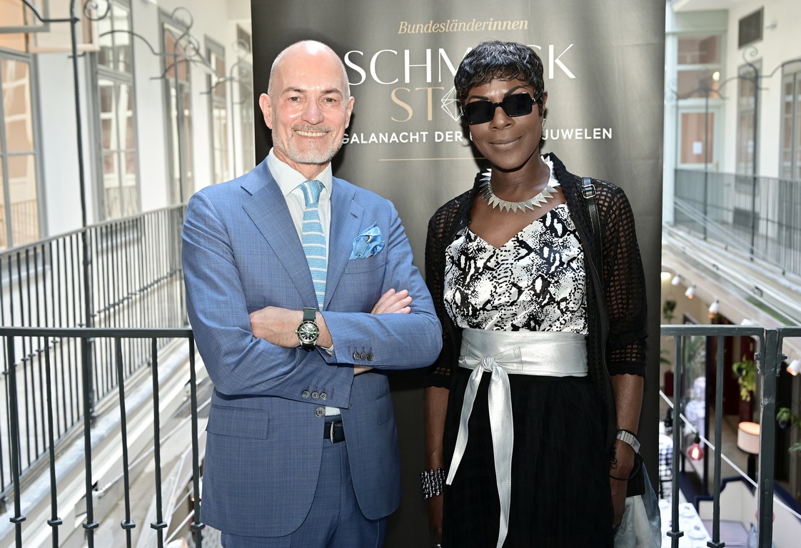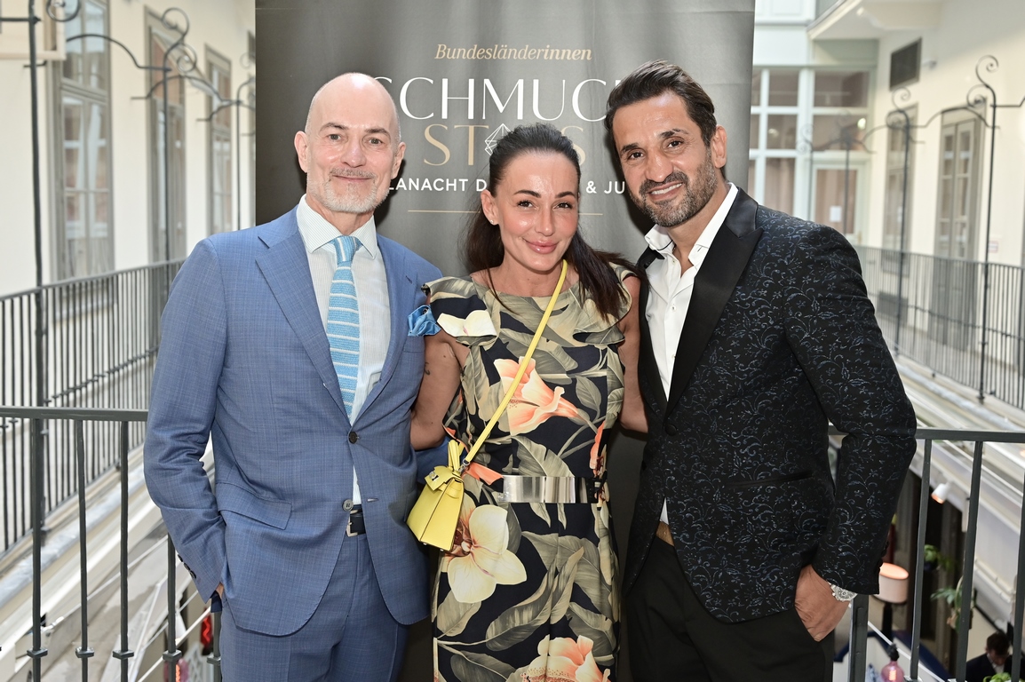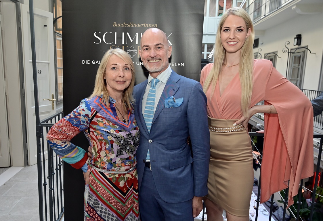 Zum geselligen Mediencocktail begrüßten Schmuckstars-Initiator Christian Lerner, Jurypräsidentin Ines B. Kasparek und Diamant-Club-Wien-Vize-Präsidentin Cornelia Gruber-Ruesch u.a. Wolfgang Hufnagl (Bundesinnungsmeister Kunsthandwerke WKO), André Stolzlechner (Hollerei und WKO), die Vorjahrespreisträger Ursula Neuwirth (Goldschmiede Neuwirth), Philipp Pelz (Juwelier Wempe), Katja Seitner (Schmuckatelier Seitner) und Jürgen Rindler (Juwelier Rindler), Uschi Fellner (look!), Dorretta Carter (Sängerin), Katharina-Julia Zagata (Wiener Immobilien), Beatrice Körmer (Miss Europe 2021) mit Freund Heimo Turin, Niki Osl (Miss Lillys Hats), Johannes Szilagy (go Rocket), August De Roode (Wiener Immobilien), Maria Yakovleva (Balletttänzerin), Katja Seitner (Schmuckatelier Seitner), Jean-Paul Vaugoin (Silberschmiede Vaugoin), Fadi Merza (ehem. Thaiboxer und Dancing Star), Evelyn Rille (Model) mit Johannes Ifkovits und Paul Pöttler (Very Media).