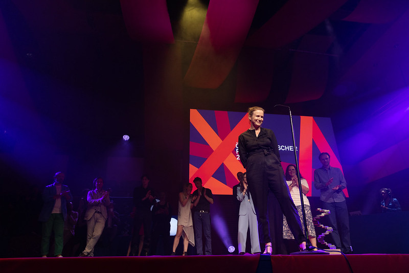 Clara Stern, Regisseurin der Gala, ging in ihrer Rede auf notwendige Veränderungen in der Branche ein: „,All Together Now!‘ könnte eine leere Floskel werden, wenn wir nicht füreinander Verantwortung übernehmen, wenn wir nicht im Wort ,Teamarbeit‘ das Team in den Mittelpunkt stellen. Ändern wir jetzt etwas! Egal, wo man in diesem hierarchischen System steht, wir dürfen uns nicht herausnehmen, wir müssen die Stimmen multiplizieren. Wir müssen unser Radar für sogenannte Red Flags einstellen und nicht einfach weitersegeln, wenn sie auftauchen. Ich habe gerne die Regie dieses Abends übernommen, weil ich eine Feier für die Branche machen wollte. Eine, die so ist wie ich. Sehr ernst. Aber auch mit einem großen Bedürfnis nach dem Gemeinsamen.“