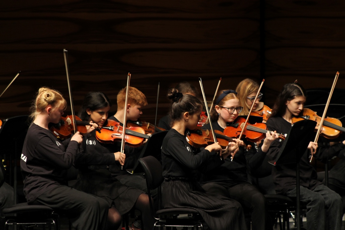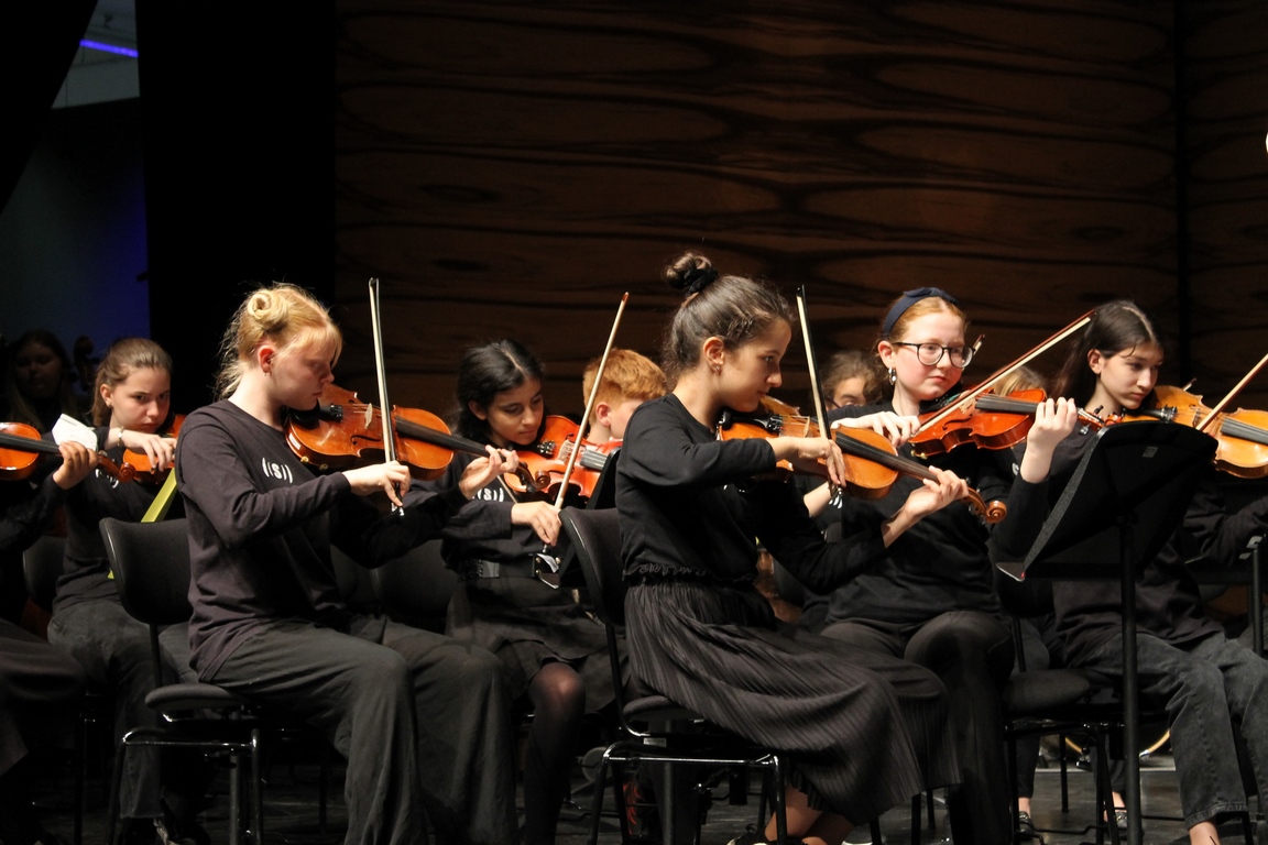 Neben Ausschnitten aus Modest Musorgskijs Komposition „Bilder einer Ausstellung“, Impromptus für Streichorchester von Jean Sibelius und der Titelmelodie des Films „Jurassic Park“ wurden unter anderem auch Popsongs aufgeführt, die bereits bei der Musicalproduktion „Nimmernimmerland“ von Superar im Mai 2022 präsentiert wurden.
