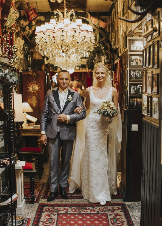 Beatrice Turin heiratete in einem besonders figurbetonten Hochzeitskleid im Meerjungfrauen-Stil aus dem Wiener Modeatelier „Goldene Naht“ der Schneidermeisterin Rada Zaric. Der Bräutigam kam elegant im dunklen Maßanzug.