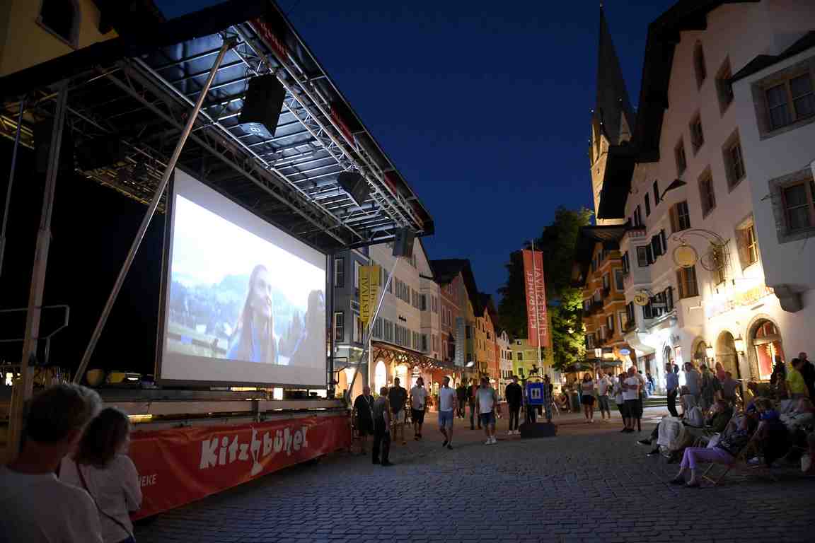 Dieser Tage verwandelte sich die Innenstadt von Kitzbühel zu einer Kino-Bühne. Am Mittwoch versammelten sich rund 120 Kinofans abends bei angenehmen 18 Grad für den großartigen Film „Corsage“. Kurz vor dem Start gab es dafür von Alexander Glehr, einem Produzenten des Films, eine perfekte Einstimmung.
